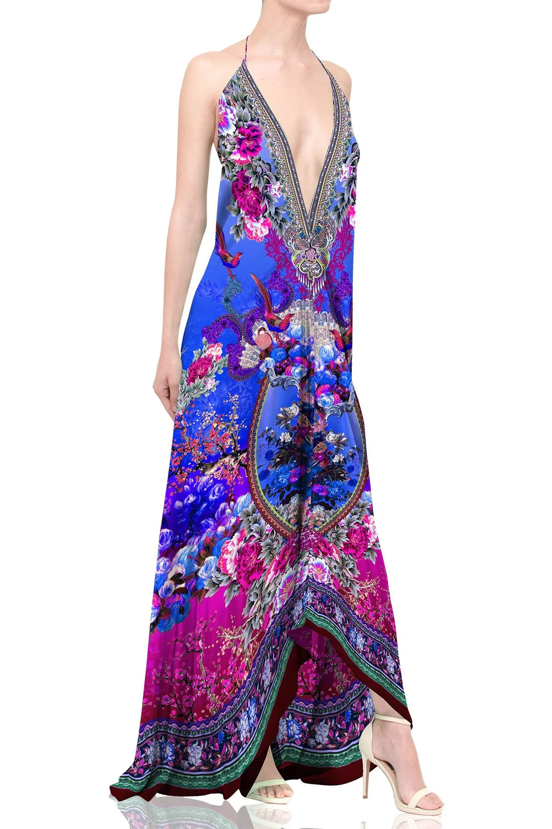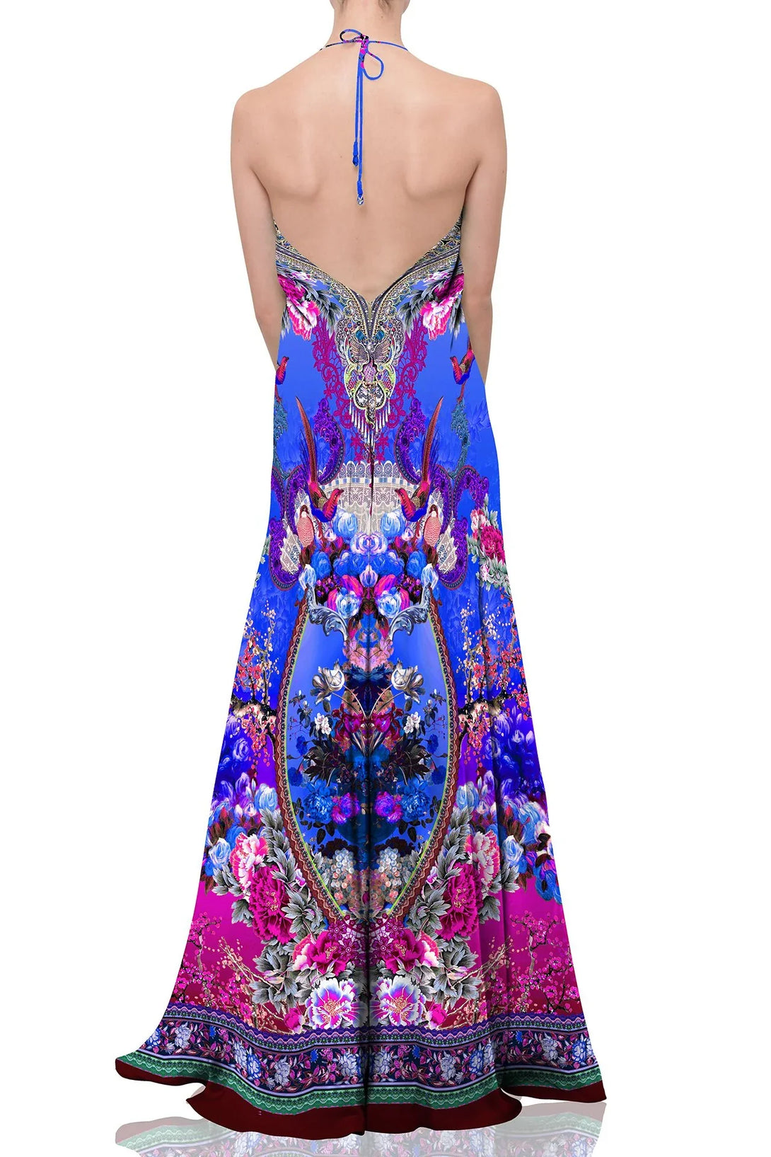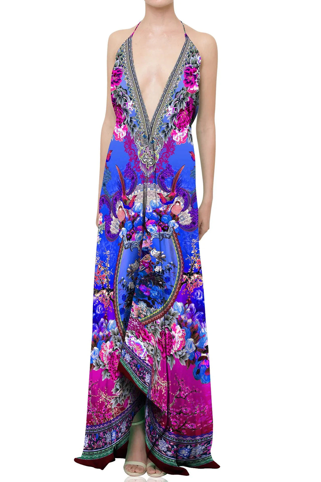 Multicolored and multi patterned maxi dress that can be used in multi ways -