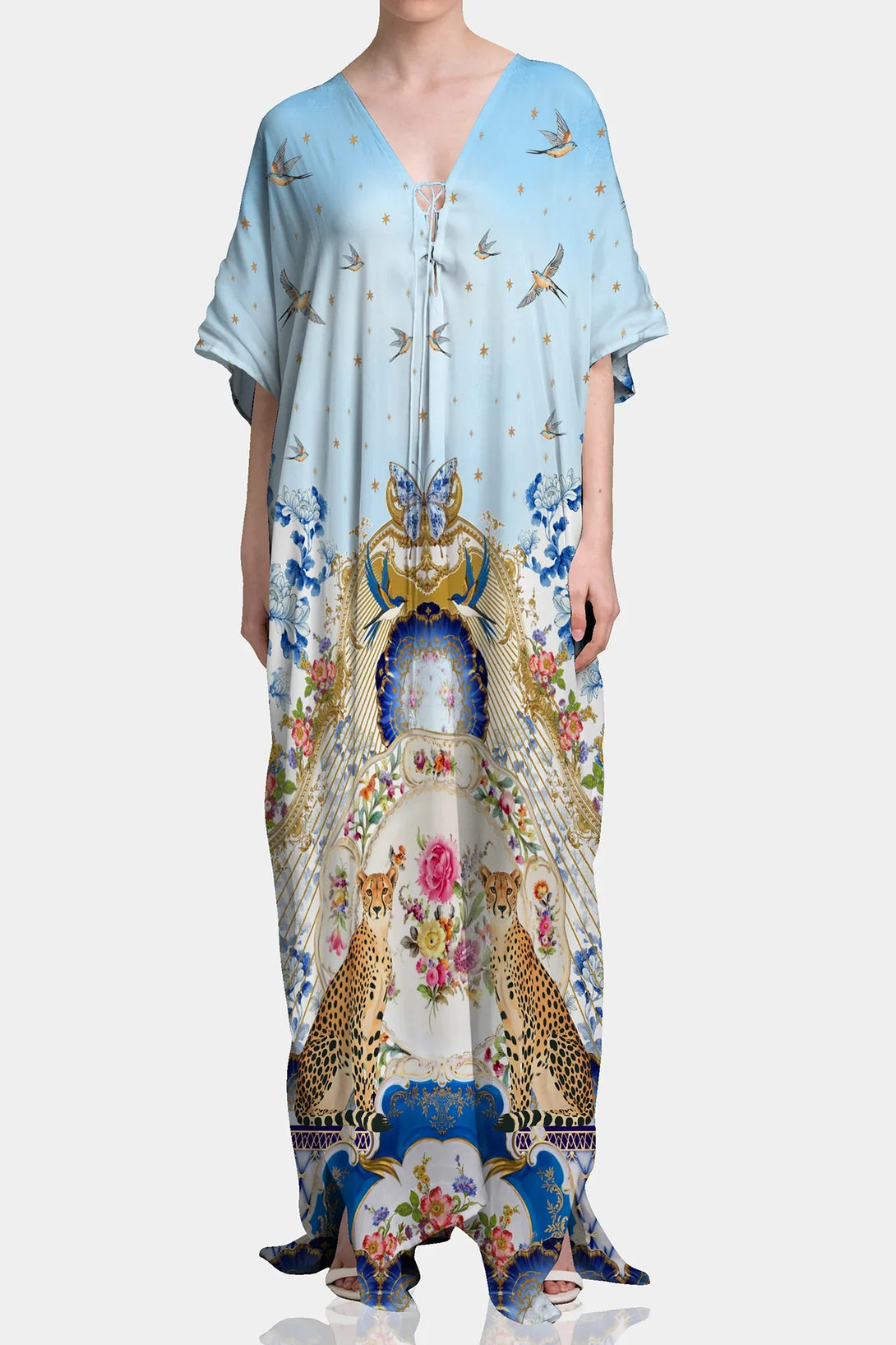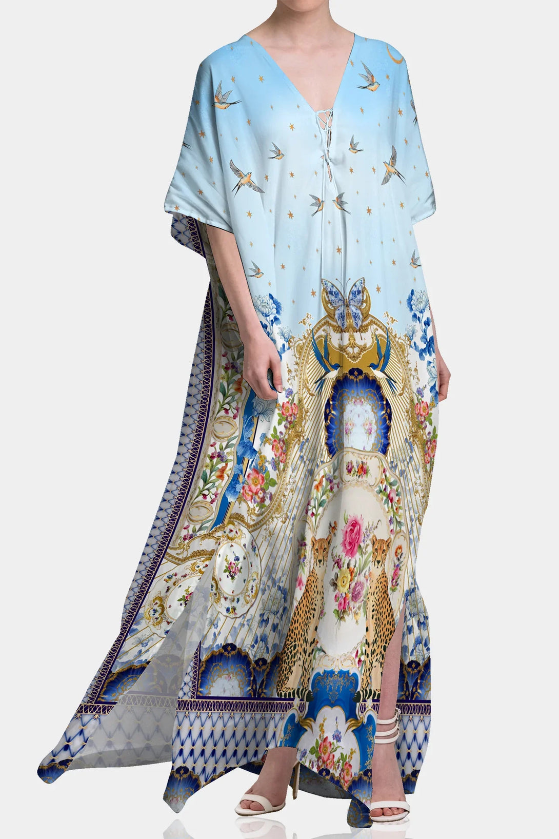 Get ready to enjoy your vacations where you can carry these clothes for beach vacation, for the summer vacation outfits, where silk caftan dress adds a touch of elegance, at Shahida Parides.