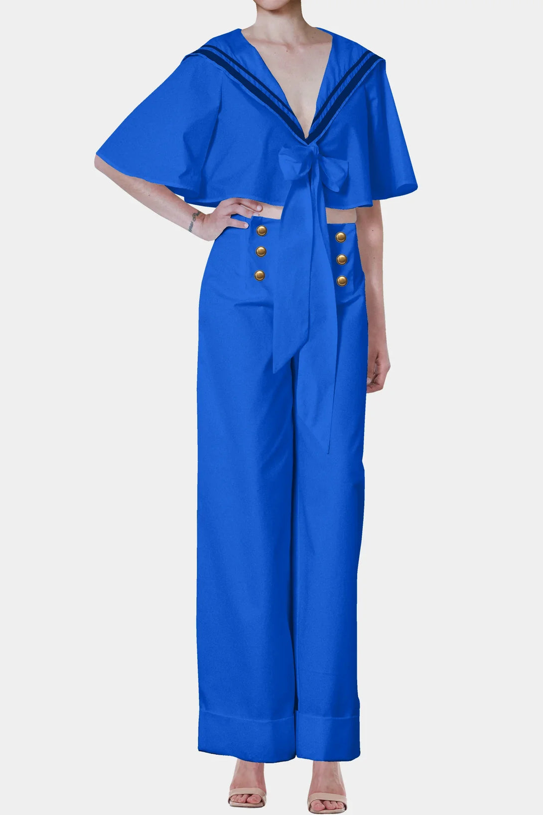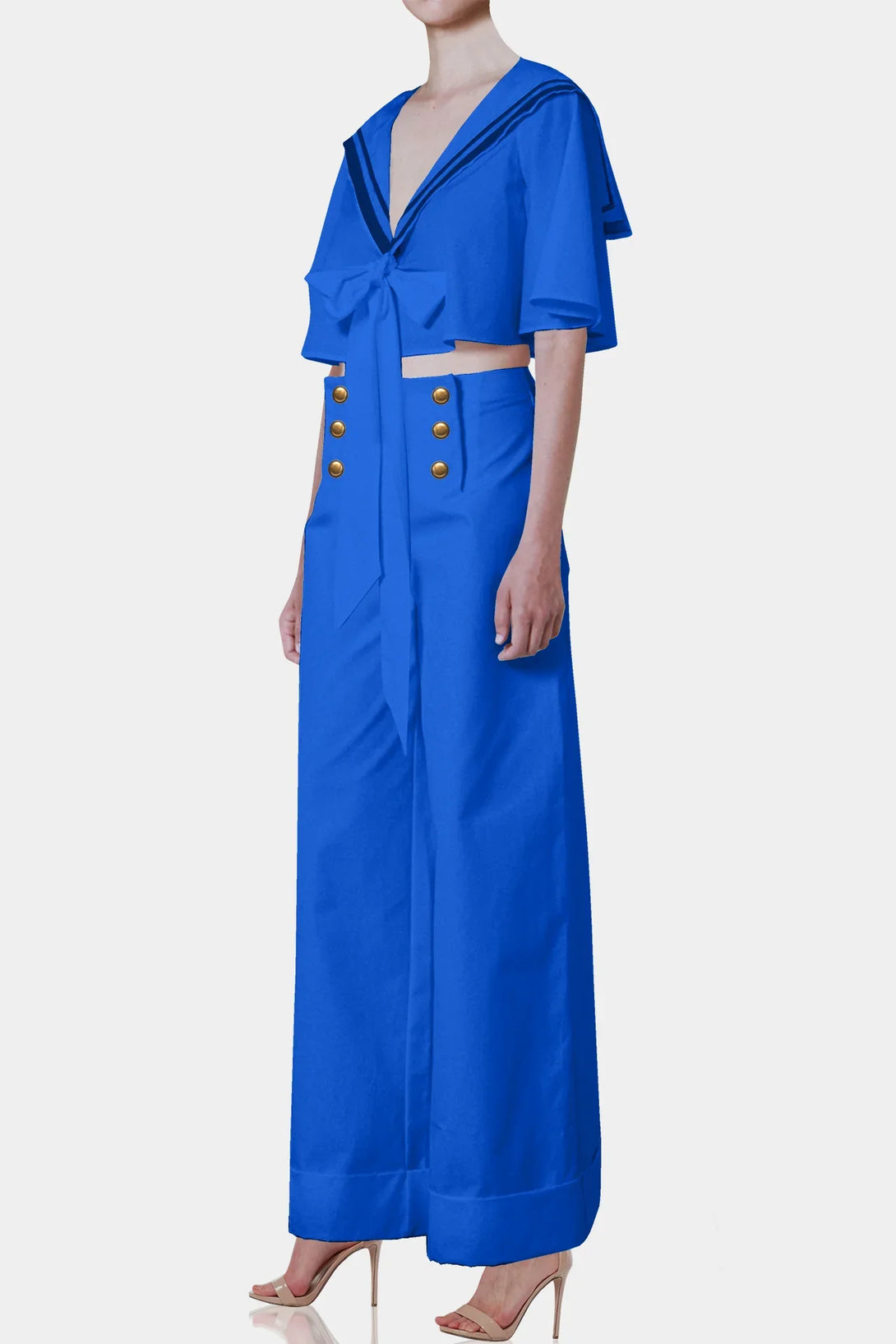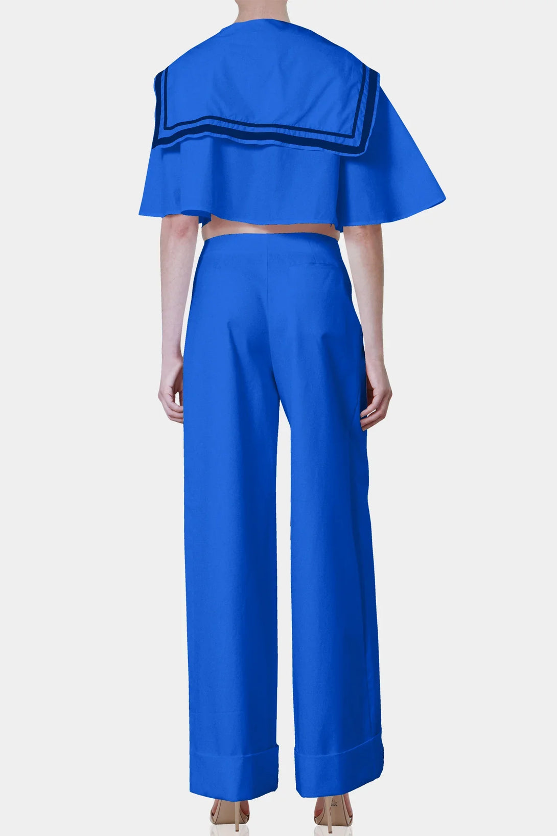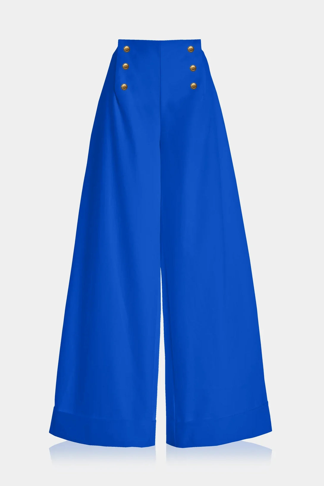 This is a perfect straight pants for women, in blue color can be paired with the shirts, and tops, to elevate your looks, designed by Shahida Parides.