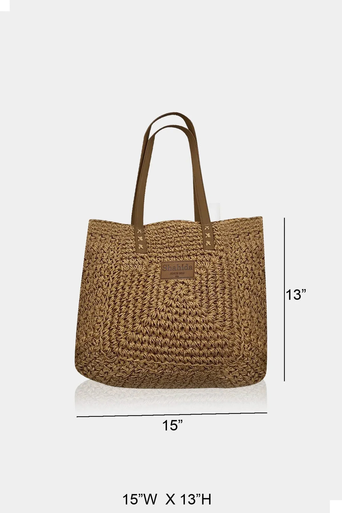 Introducing our stylish raffia bag, the perfect accessory for any summer outing. Crafted with a durable straw material, this bag features a chic brown handle that adds a touch of sophistication to your ensemble.
