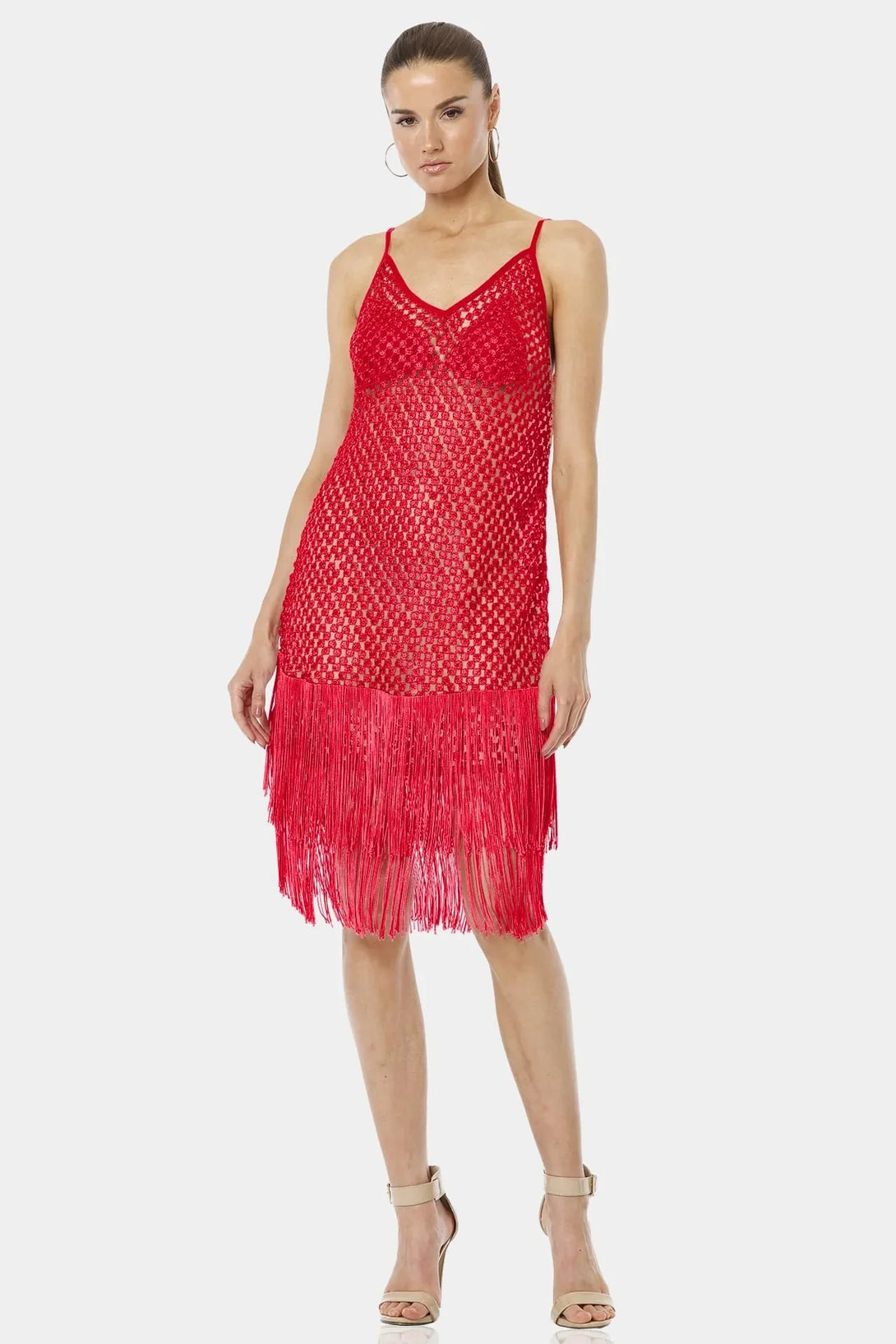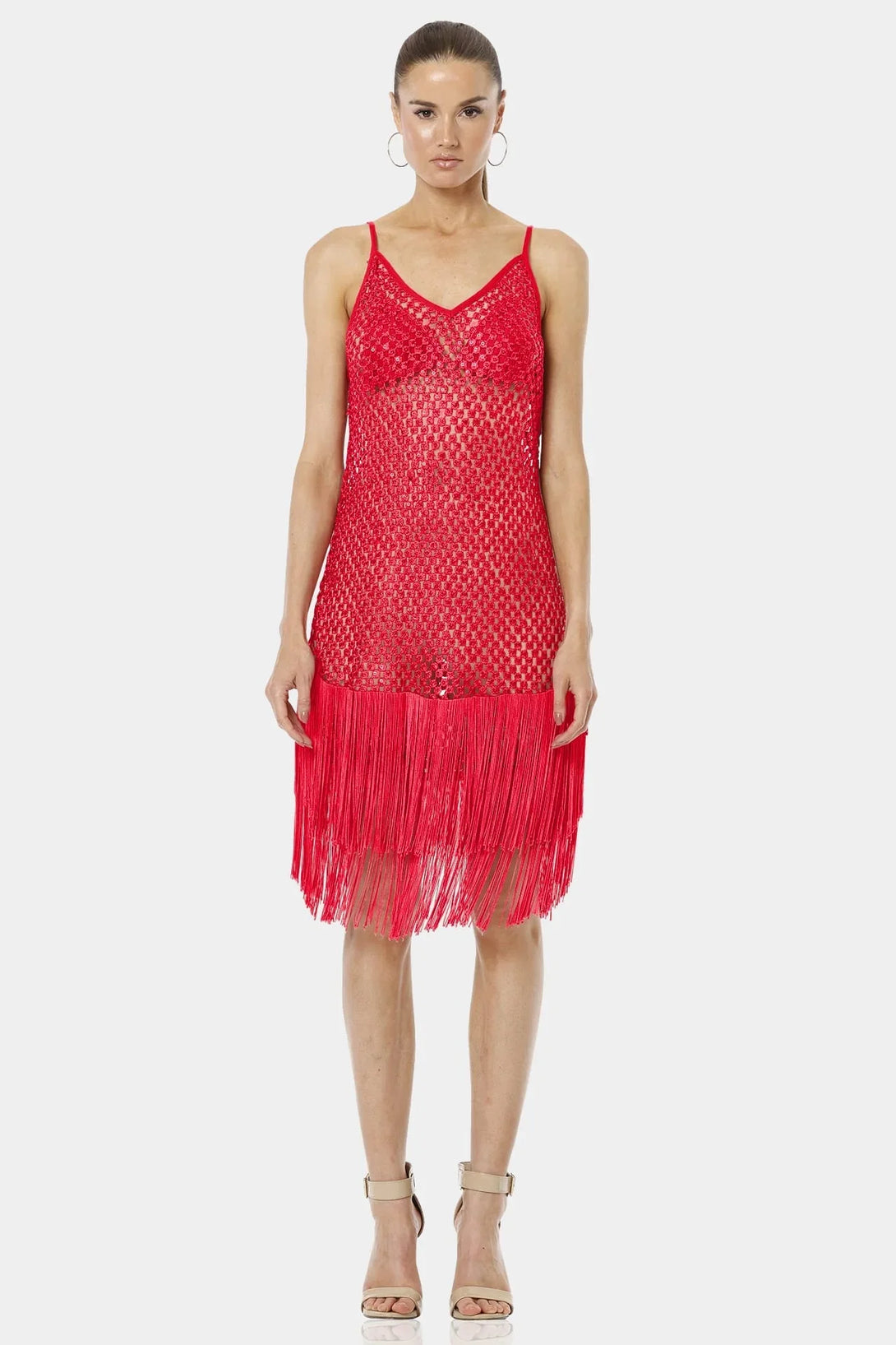 The Red Dancing Fringe Midi Dress is the perfect choice for any special occasion.Ā It features a halter neckline, a fitted waist, and cascading fringe on the skirt. The RedĀ  sequins add a touch of sparkle and shimmer to the dress.