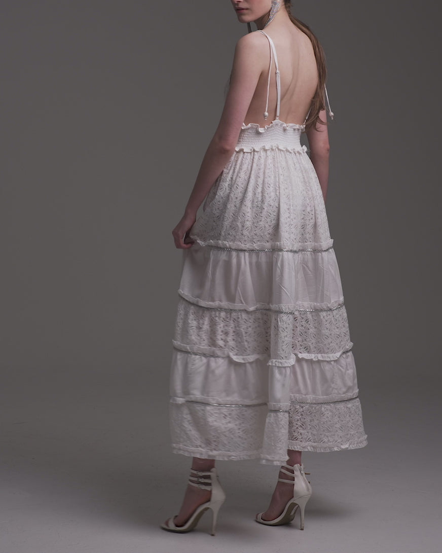 The cotton poplin fabric offers a lightweight structure that drapes beautifully and ensures cool comfort on even the warmest days.