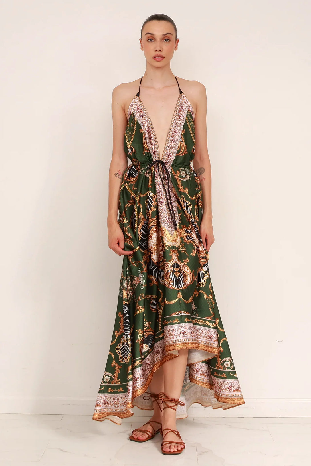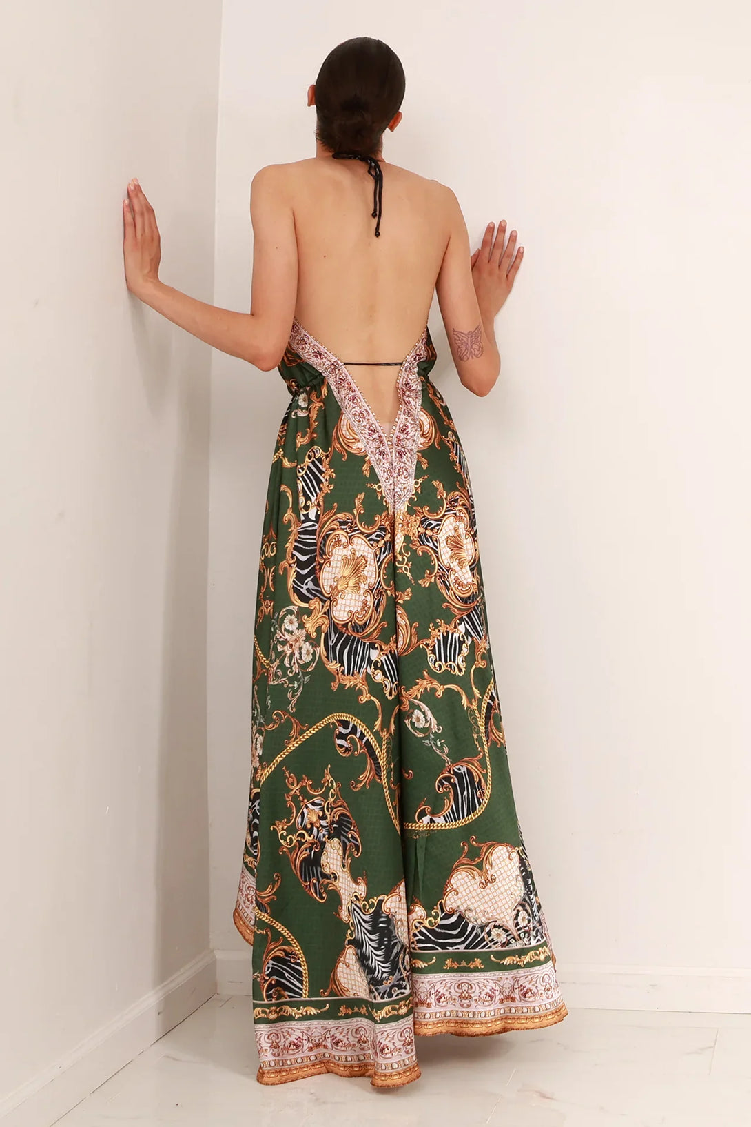 • Front Criss Cross halter neck - Back tie closure - V backless look