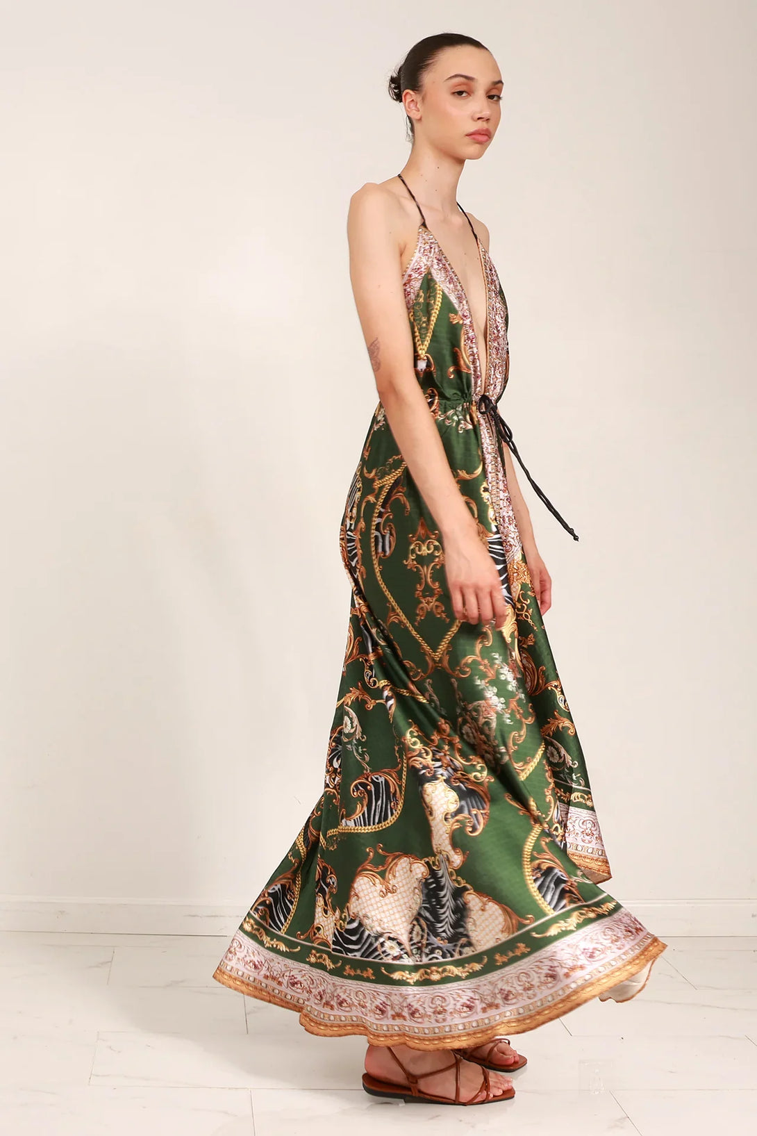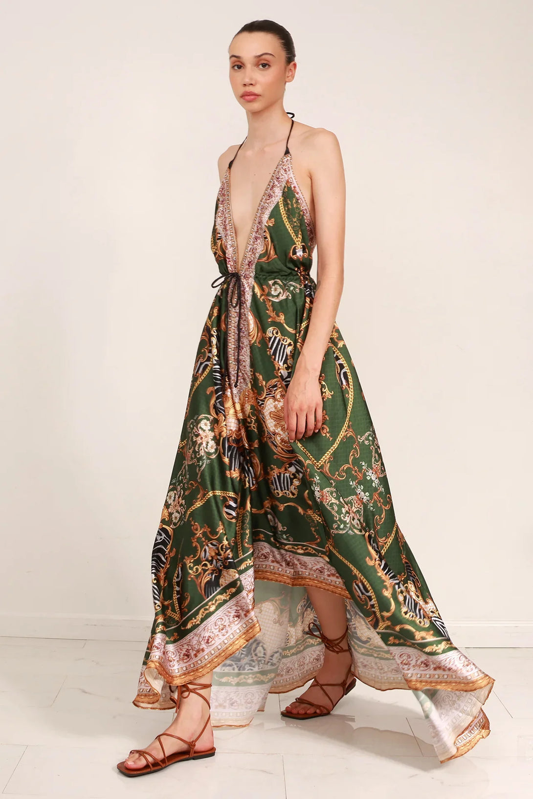 • V-neck Style - Back tie closure - V-backless look
