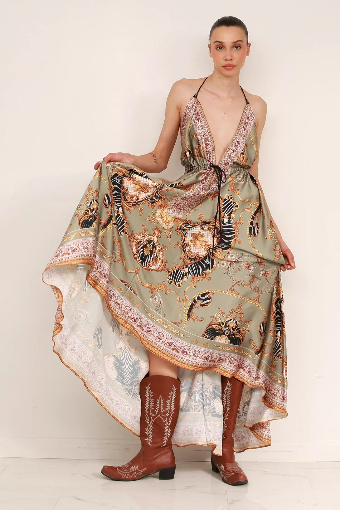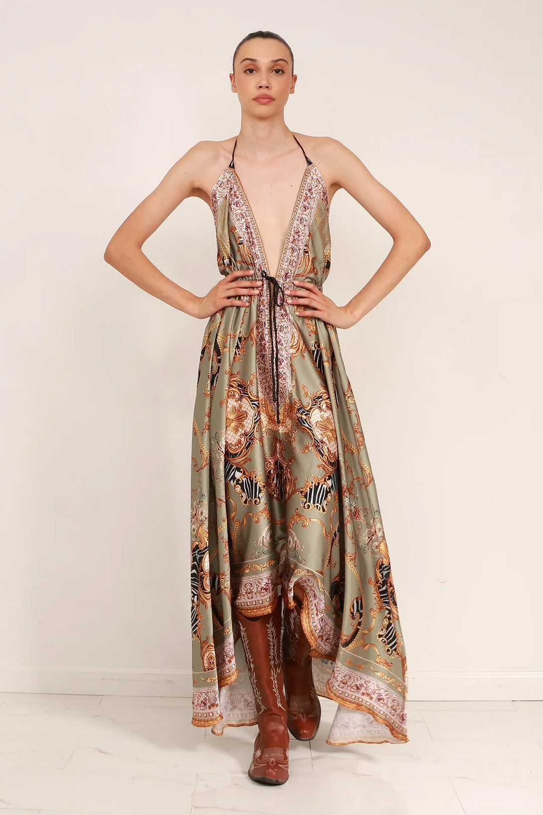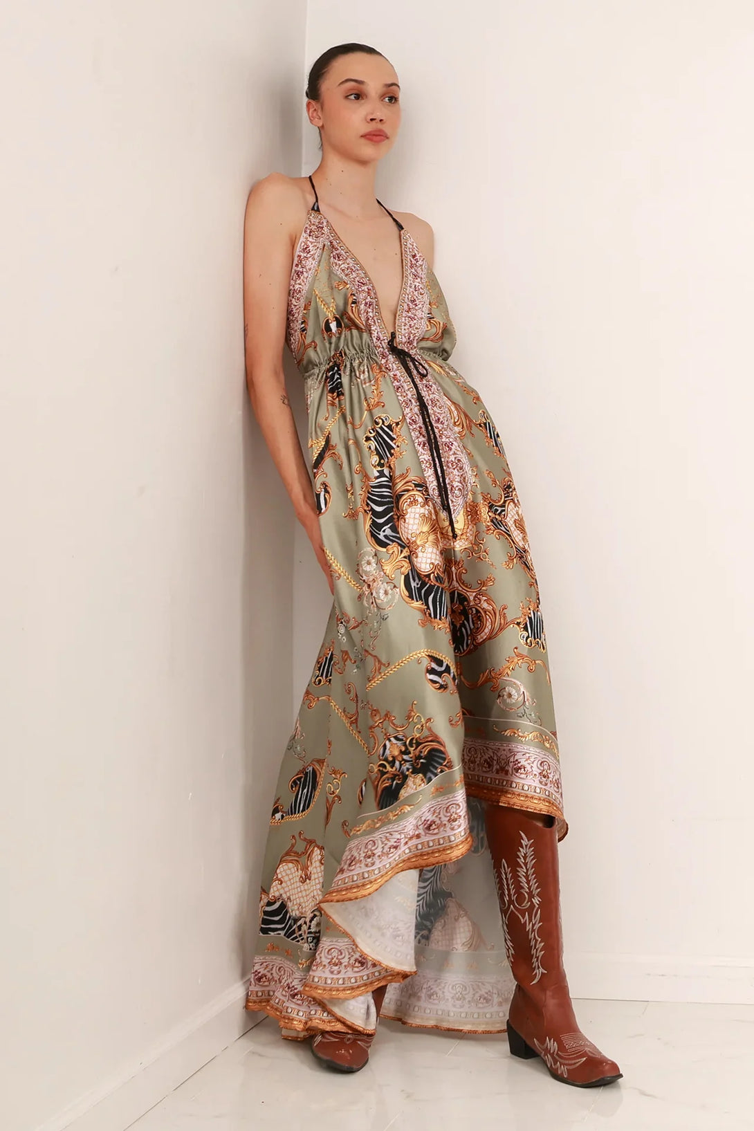 This maxi dress, with multiway dress style which can be styled in 3 ways, like one shoulder, halter neck, and off shoulder, where its print add a touch of elegance into your outfit, which is designed by Shahida Parides.