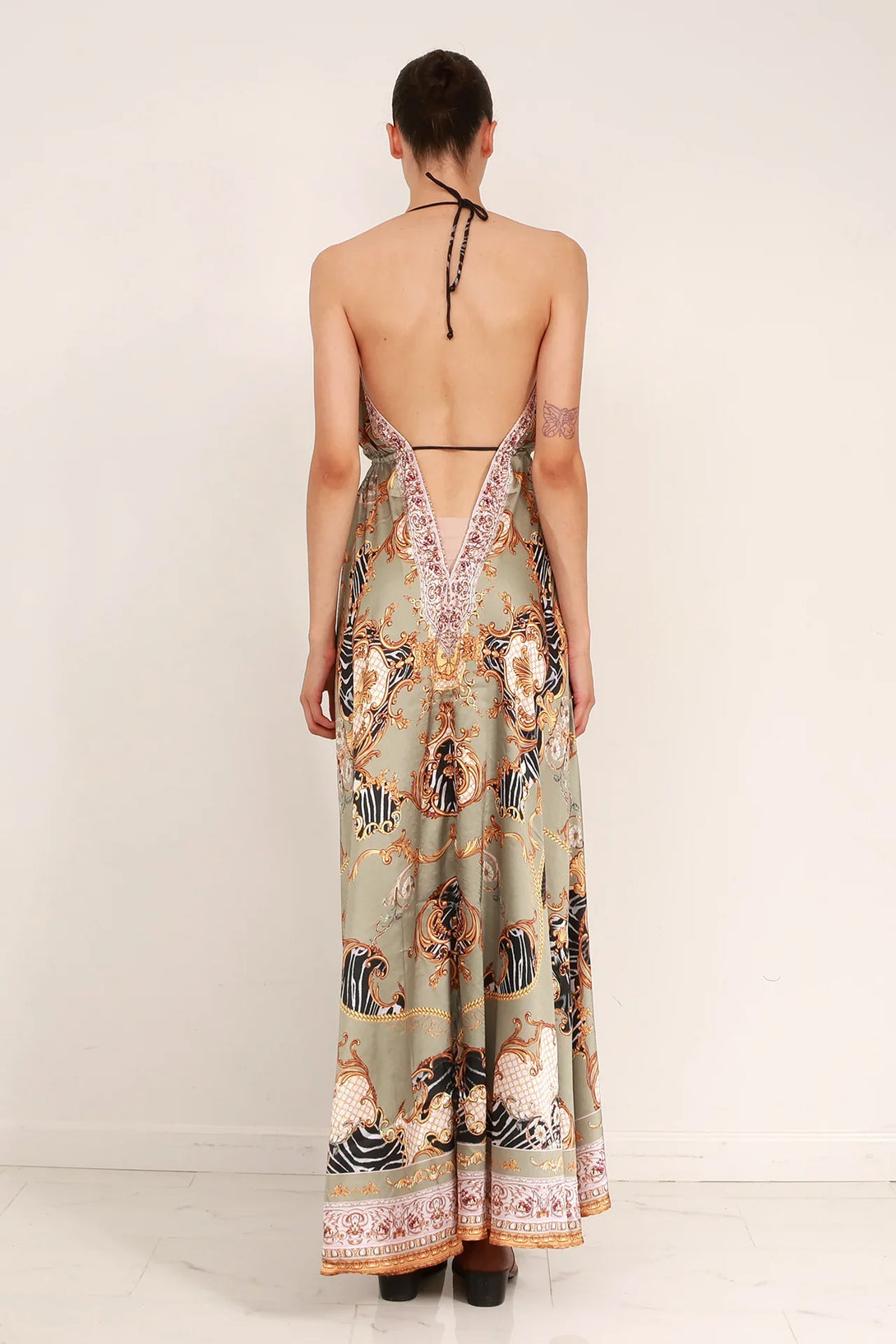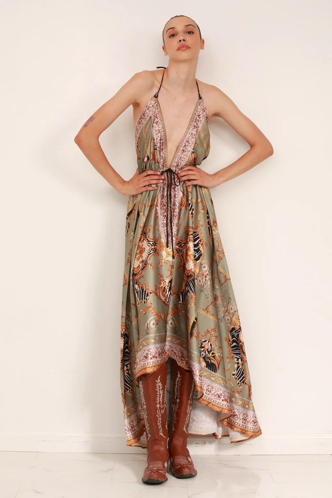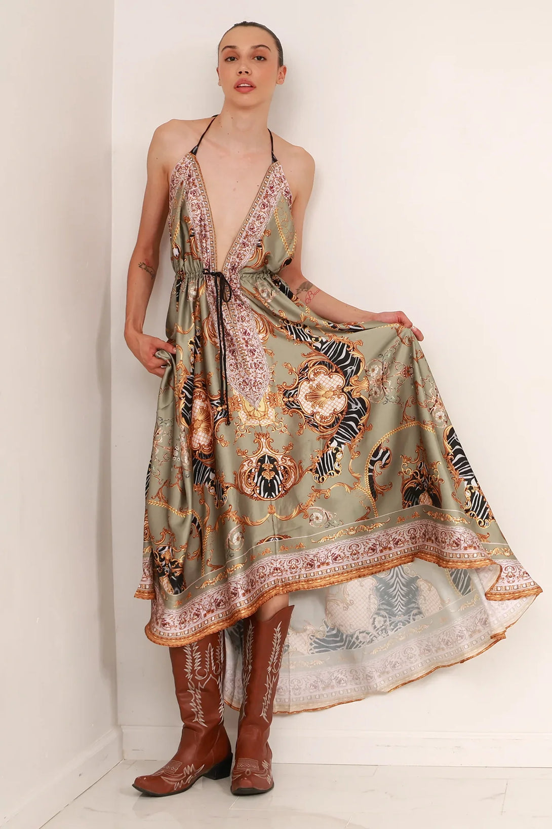 This maxi dress, with multiway dress style which can be styled in 3 ways, like one shoulder, halter neck, and off shoulder, where its print add a touch of elegance into your outfit, which is designed by Shahida Parides.