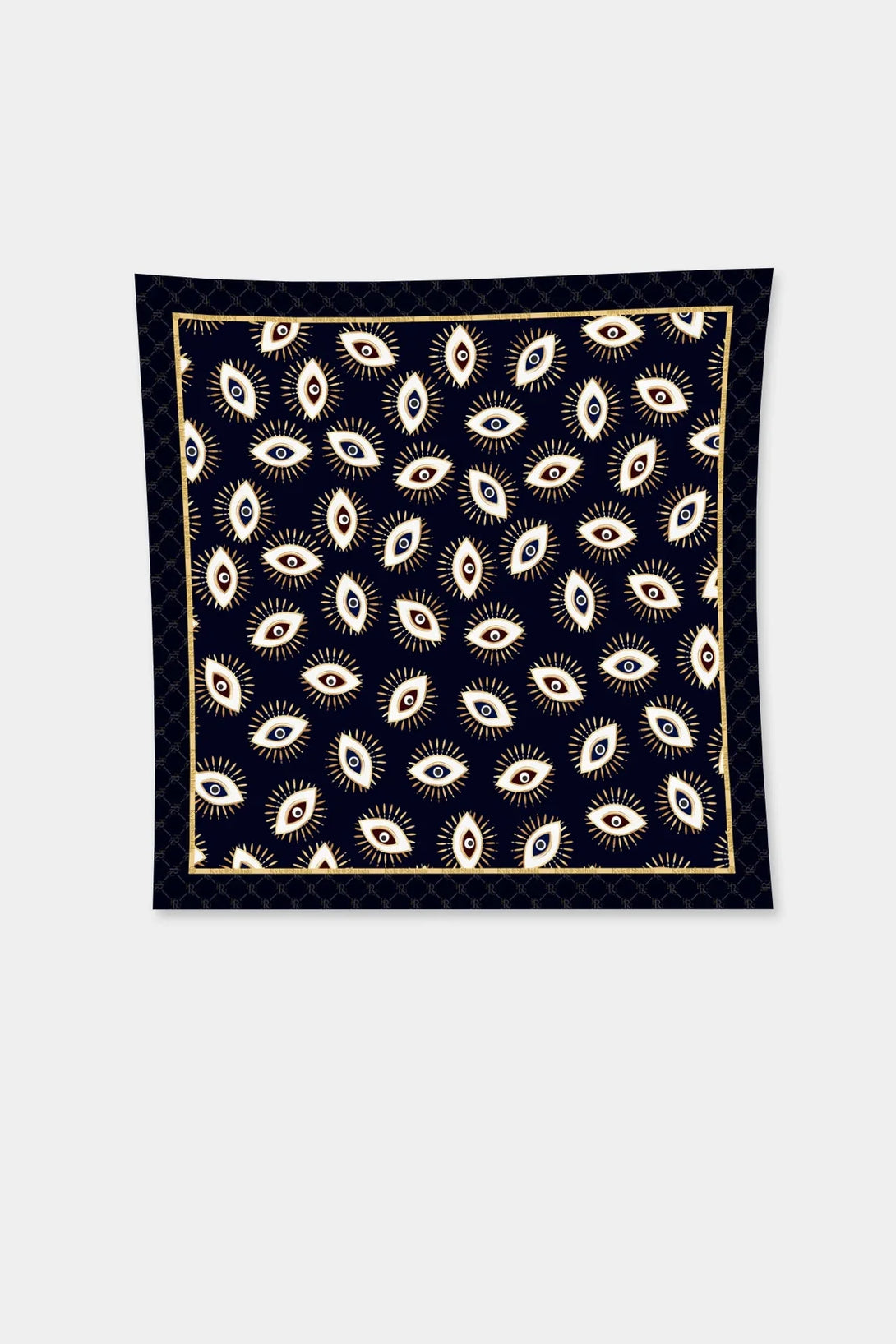 This stylish designer scarves for women by Kyle X Shahida, with a evil eye printed silk scarf is the perfect accessory to elevate any outfit in chunky look, which is made with high quality cupro silk fabric, that is versatile and can be styled in various ways.