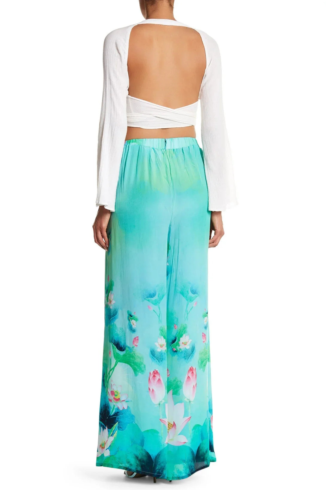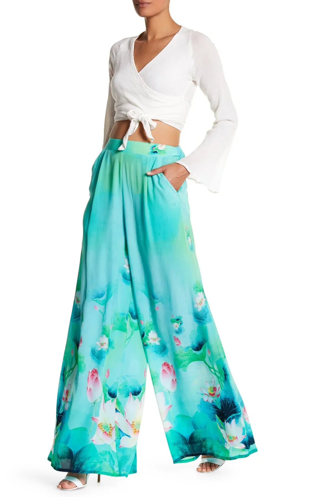 Floral Print Wide Leg Pants In Green