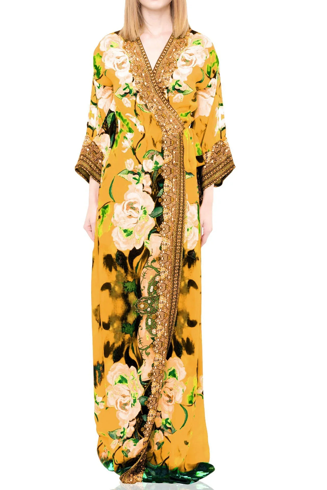 This isn't just a dress; it's an enigma draped in elegance. The long wrap maxi dress with long sleeves whispers of timeless romance and effortless mystery, inviting you to embrace your inner femme fatale, one flowing silhouette at a time.