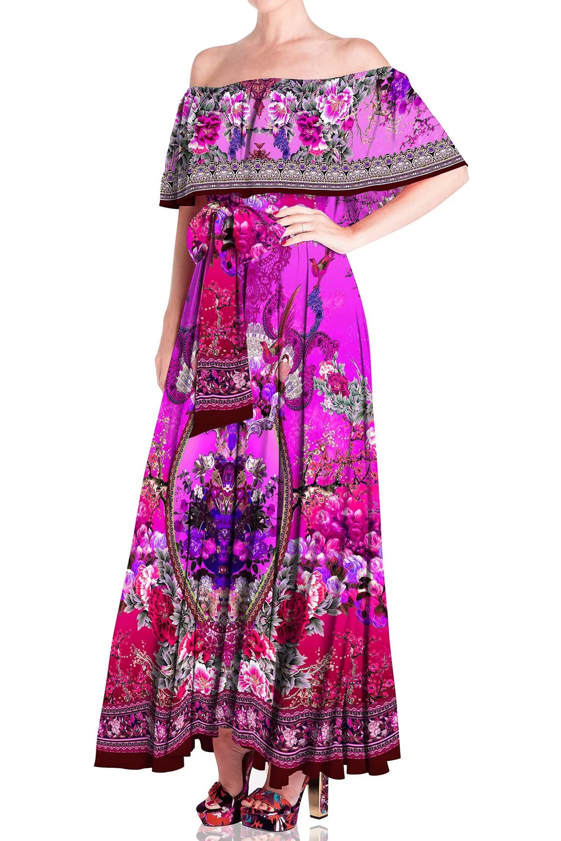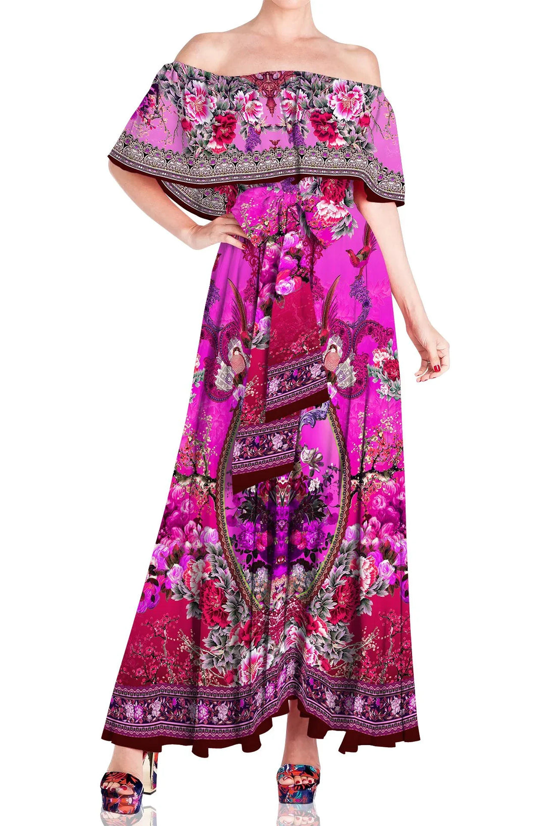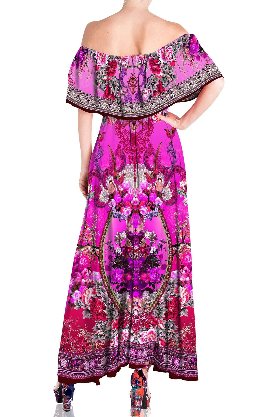 This stunning Fuchsia Off The Shoulder Dress will make a statement at any event. The vibrant color and flattering off-shoulder design are perfect for any body type. Made with high-quality materials, this dress is both stylish and comfortable. Take your fashion game to the next level with this one-of-a-kind dress.