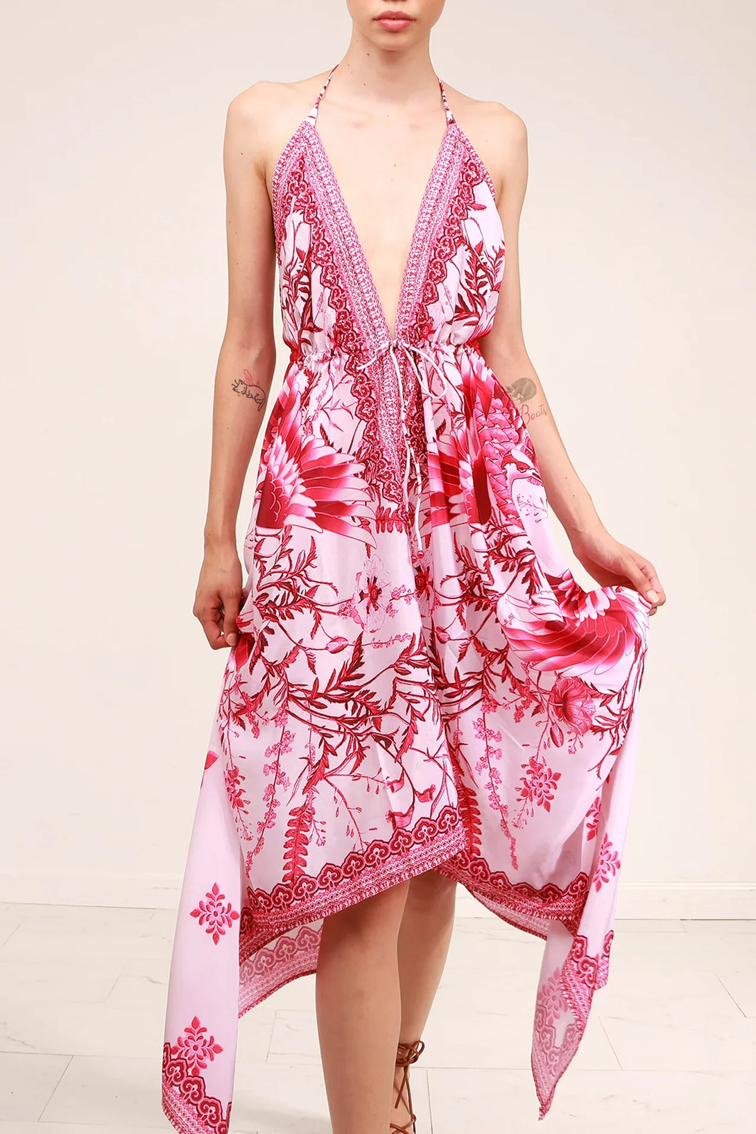 This maxi dress, with multiway dress style which can be styled in 3 ways, like one shoulder, halter neck, and off shoulder, where its printed add a touch of elegance into your outfit, which is designed by Shahida Parides.