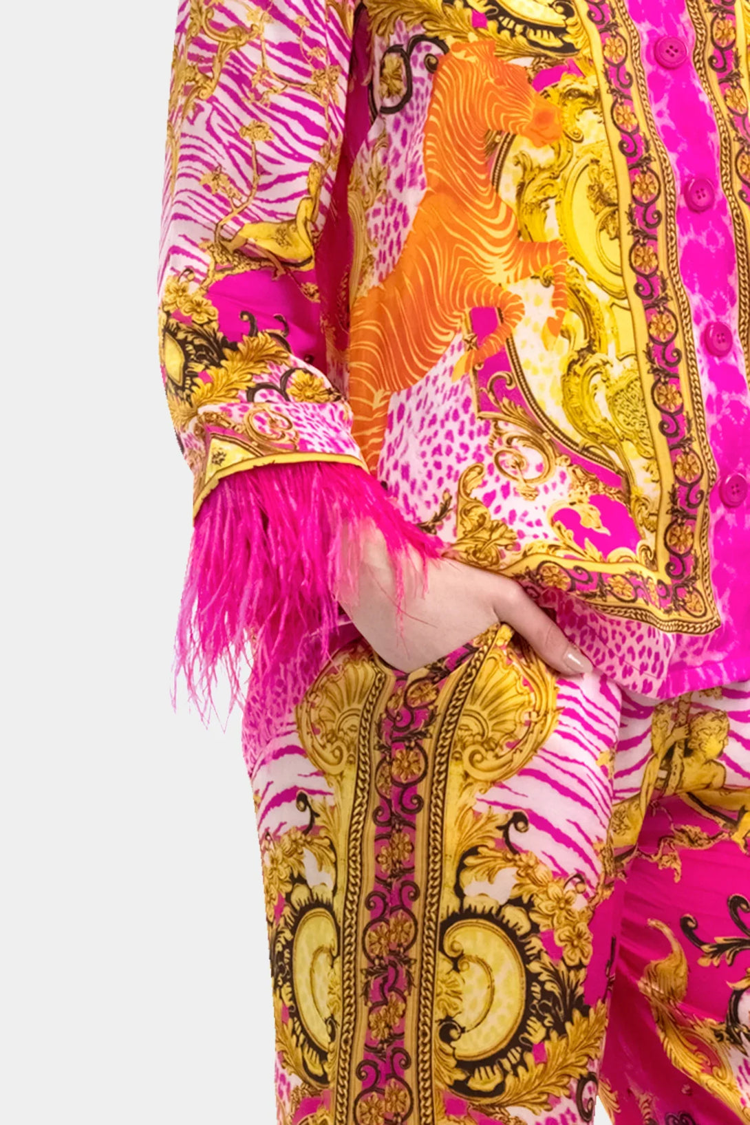 Elegant and Timeless! This pink two piece outfit, is perfect to style with matching pants to elevate your looks, which is designed by Shahida Parides.