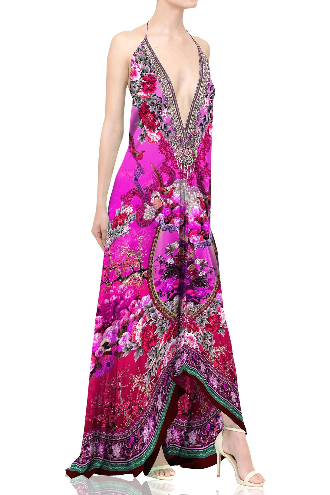 Multicolored and multi patterned maxi dress that can be used in multi ways -