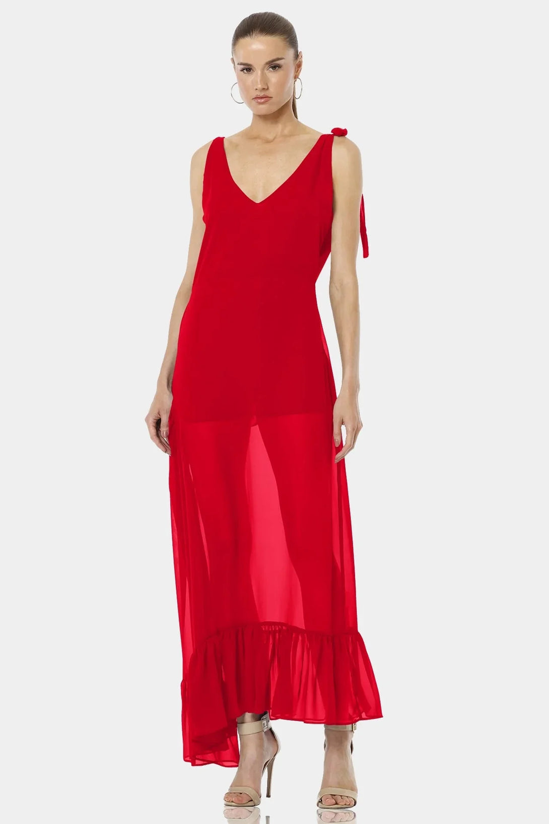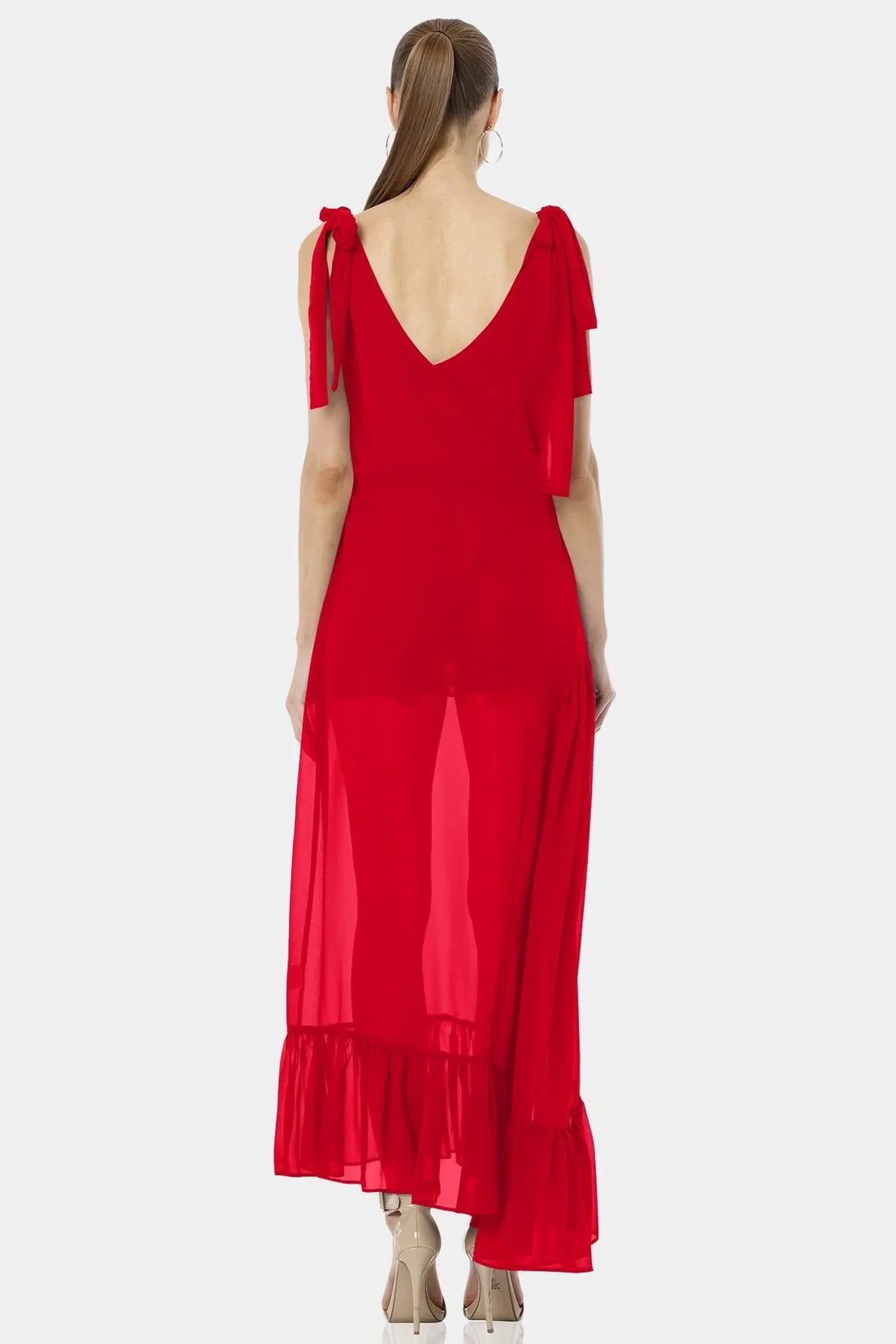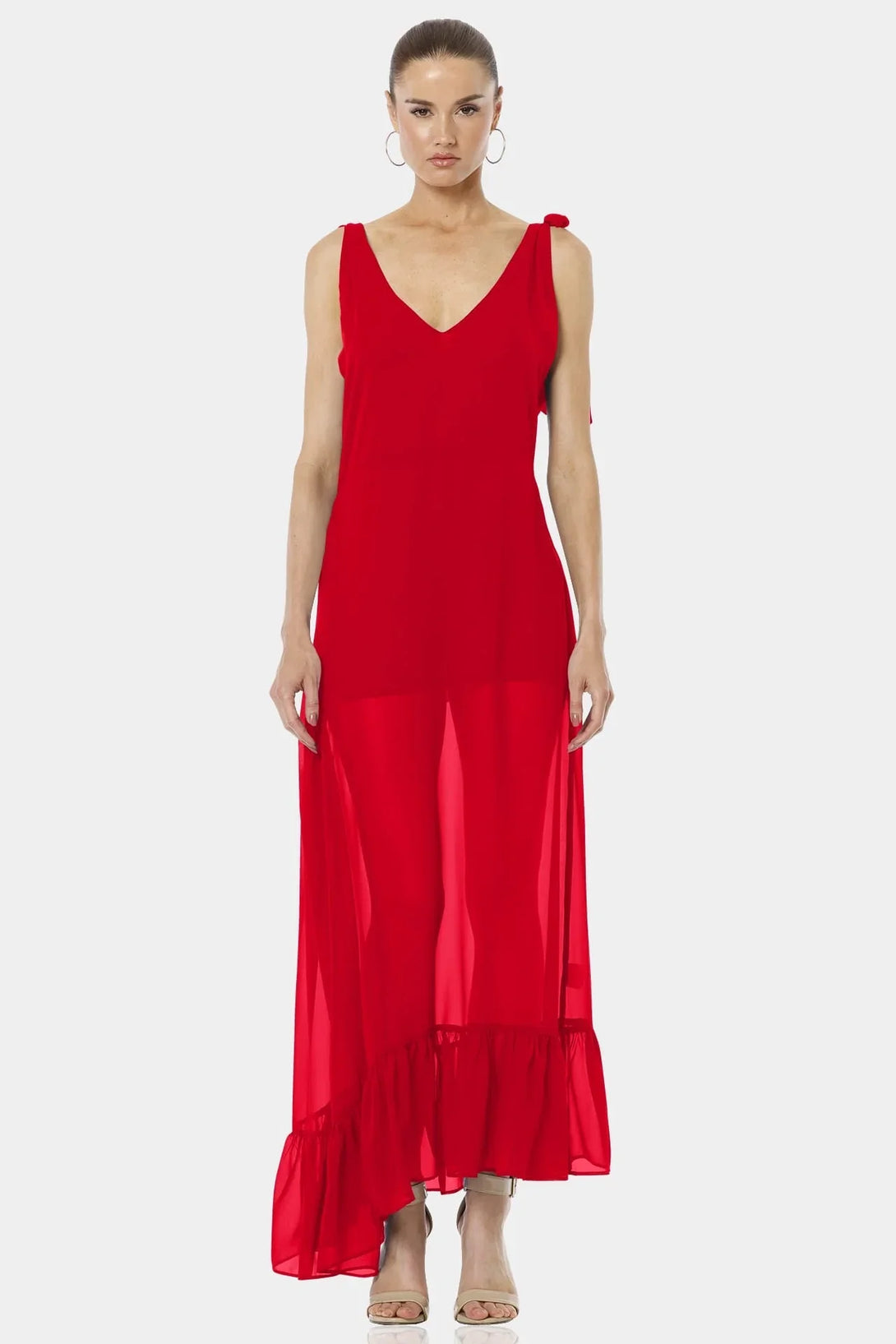 Garden Long Sexy Red See Through Dress With Ruffle Bottom