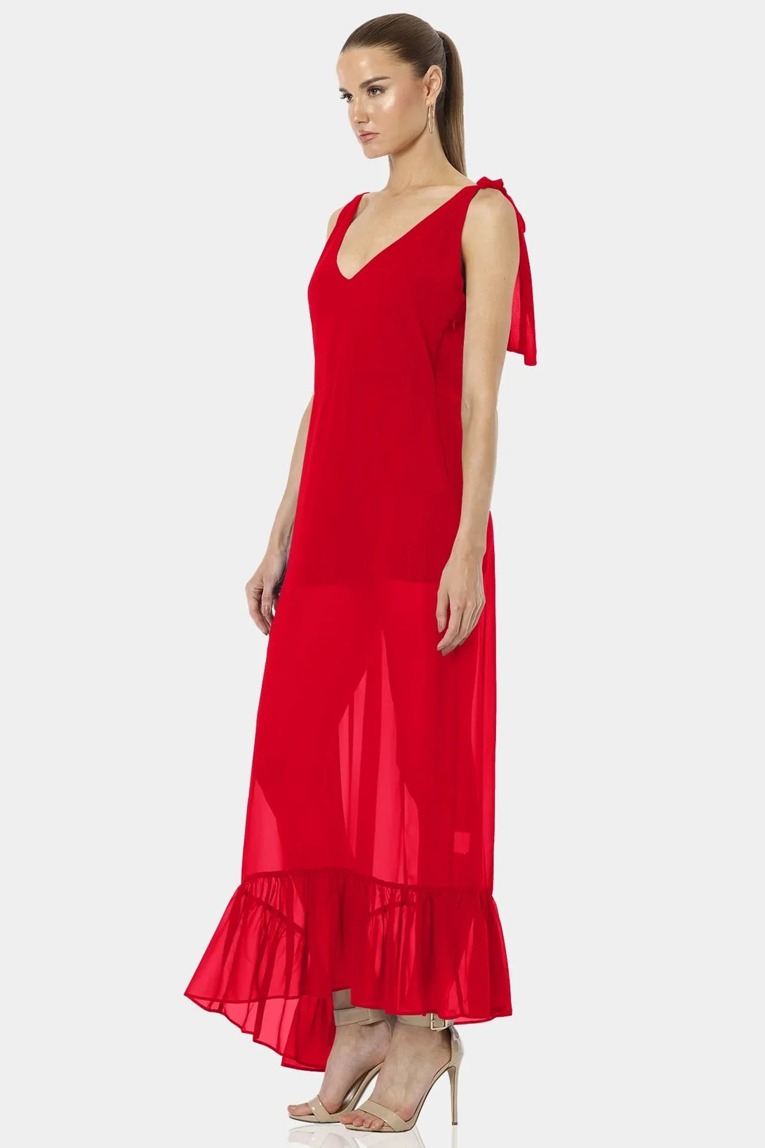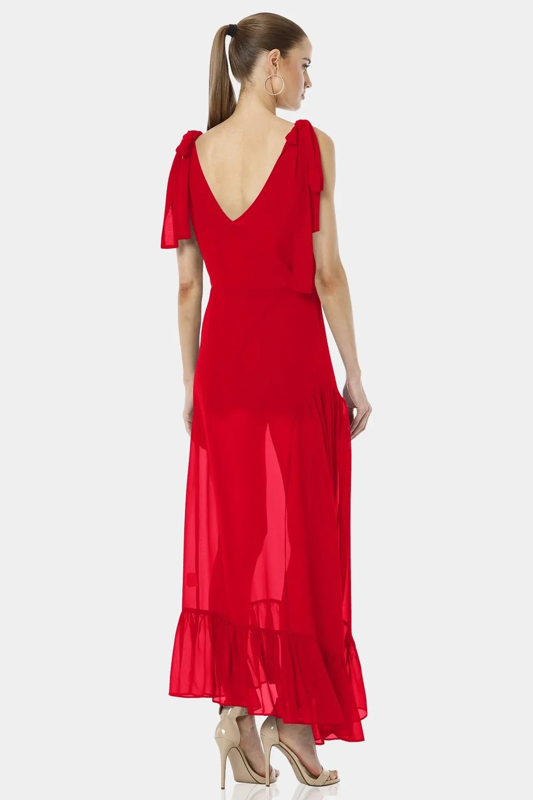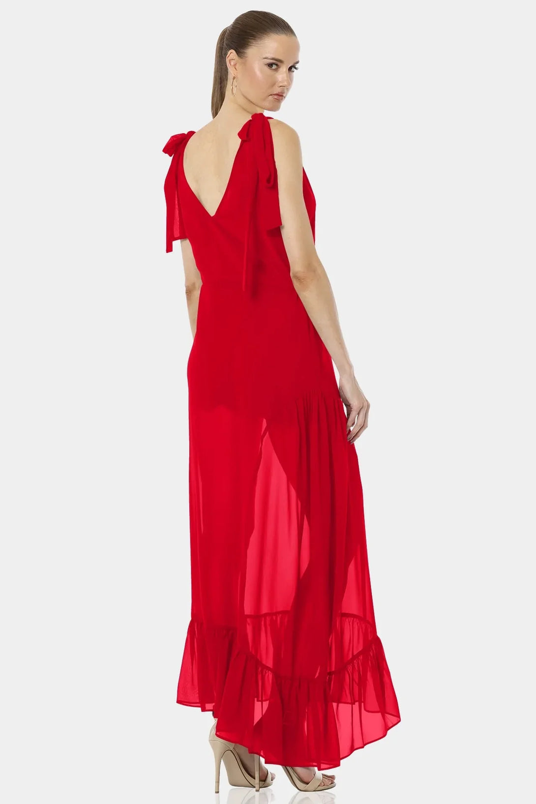 Garden Long Sexy Red See Through Dress With Ruffle Bottom