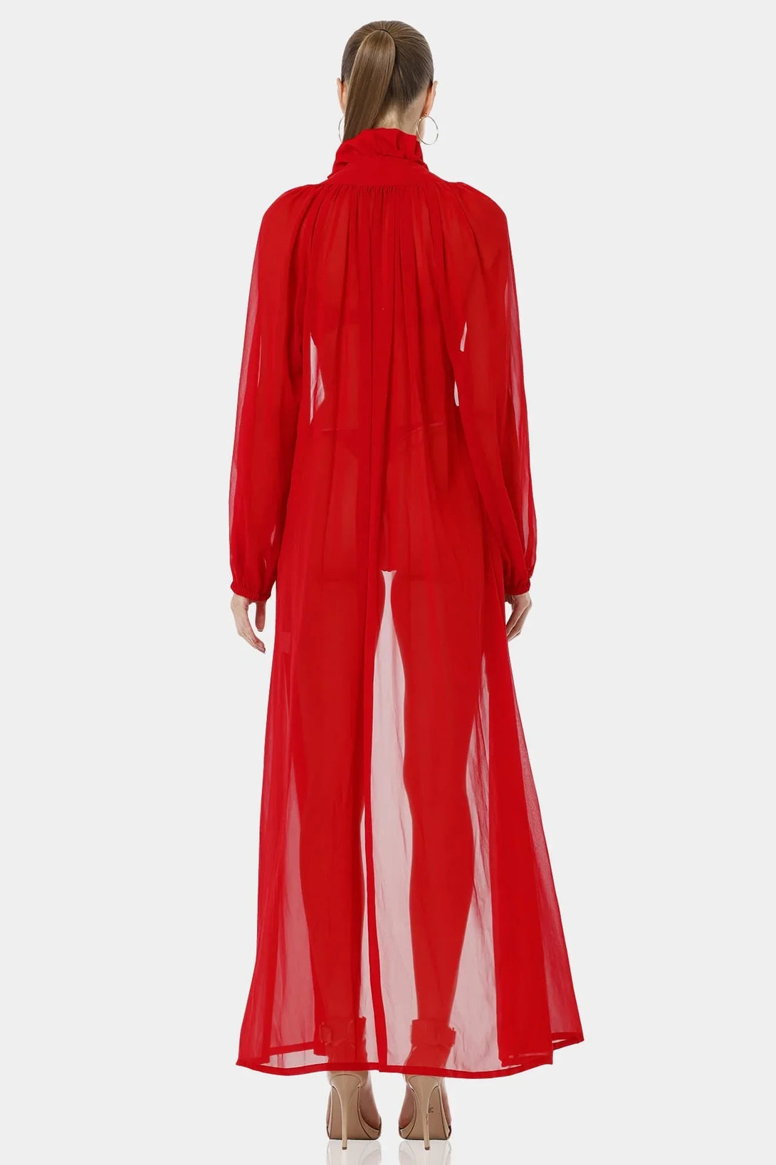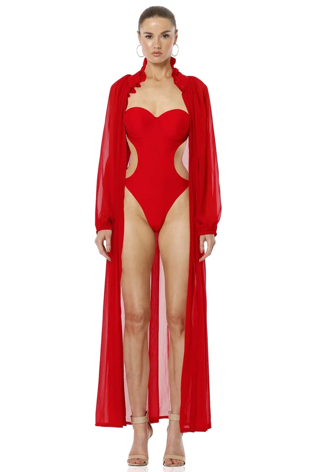 Kamini Red Sexy Strapless Designer Swimsuit With Long Cover Up