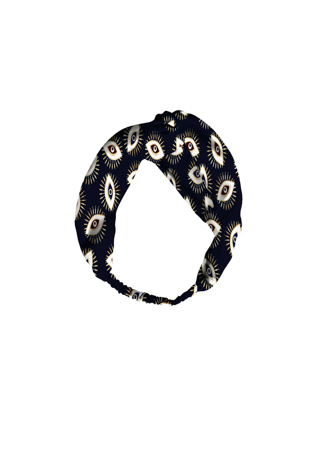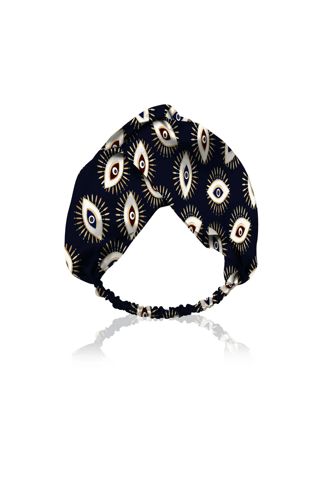 Finish off your look with this knotted head wrap crafted from ultra smooth silk. An elastic back ensures a perfect fit in this Head Wrap. Silk Blend Headband in Evil Eye Black at Kyle X Shahida.