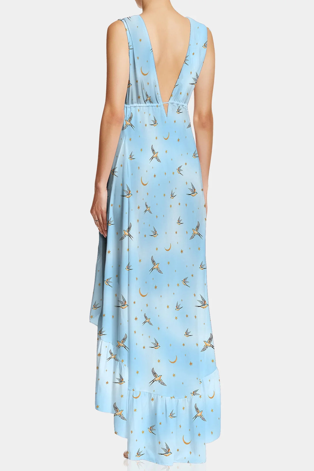 The magic lies in the asymmetrical hemline. It's a dress that turns heads and leaves a lasting impression, making you feel effortlessly beautiful and ready to conquer the day.