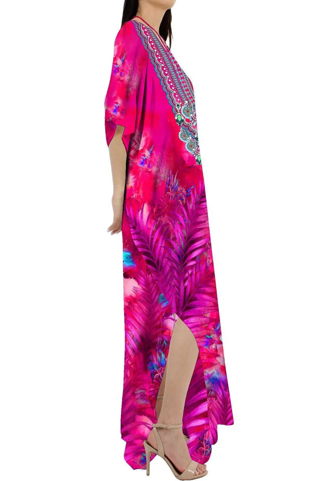 Unleash your wild side with leopard print kaftan dress, that featuresĀ Shark biteĀ hemĀ and allover print that can can be worn by multi wear dress.