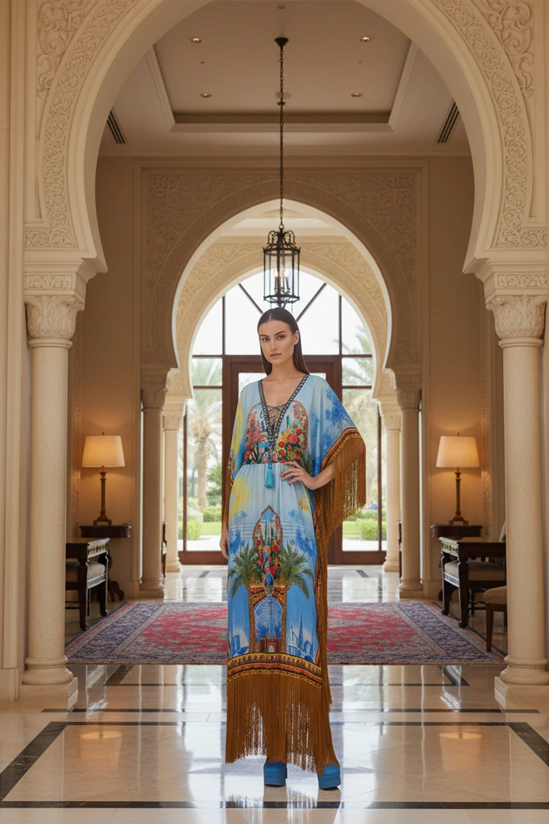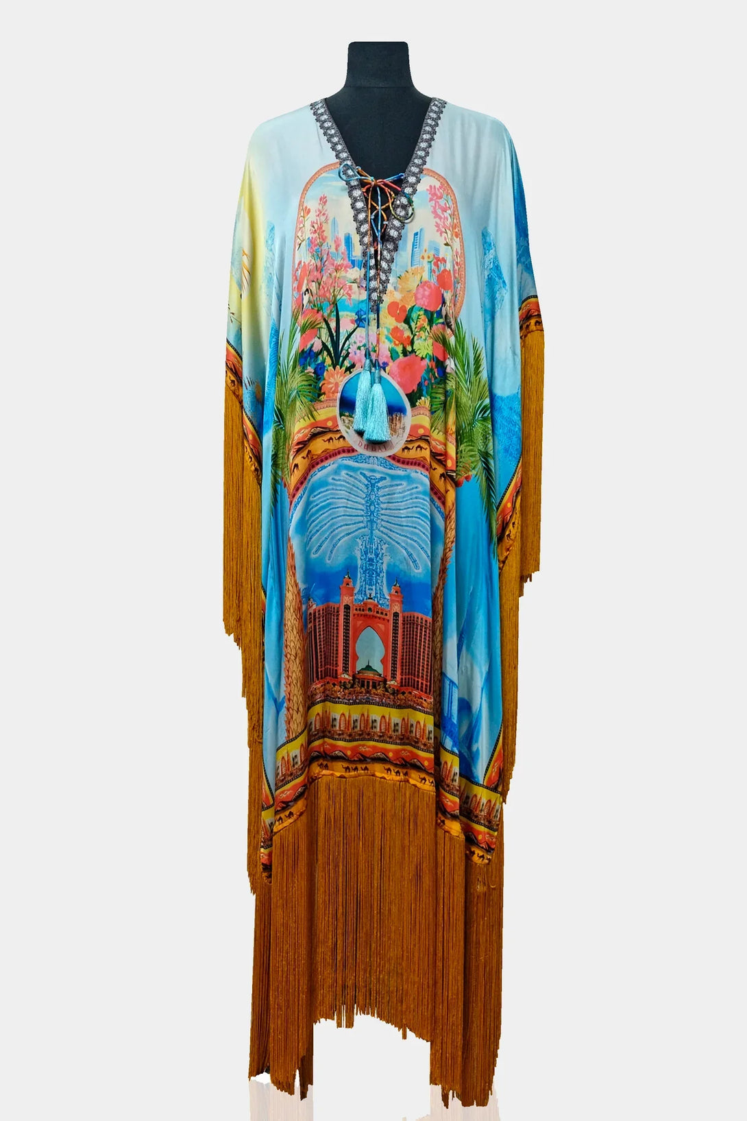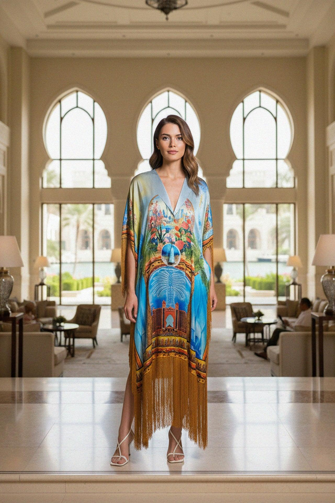 Wear Shahida Parides multi wear dress, one of four ways for the style you'll love! Versatility ensures you'll never be bored of this silk kaftan.