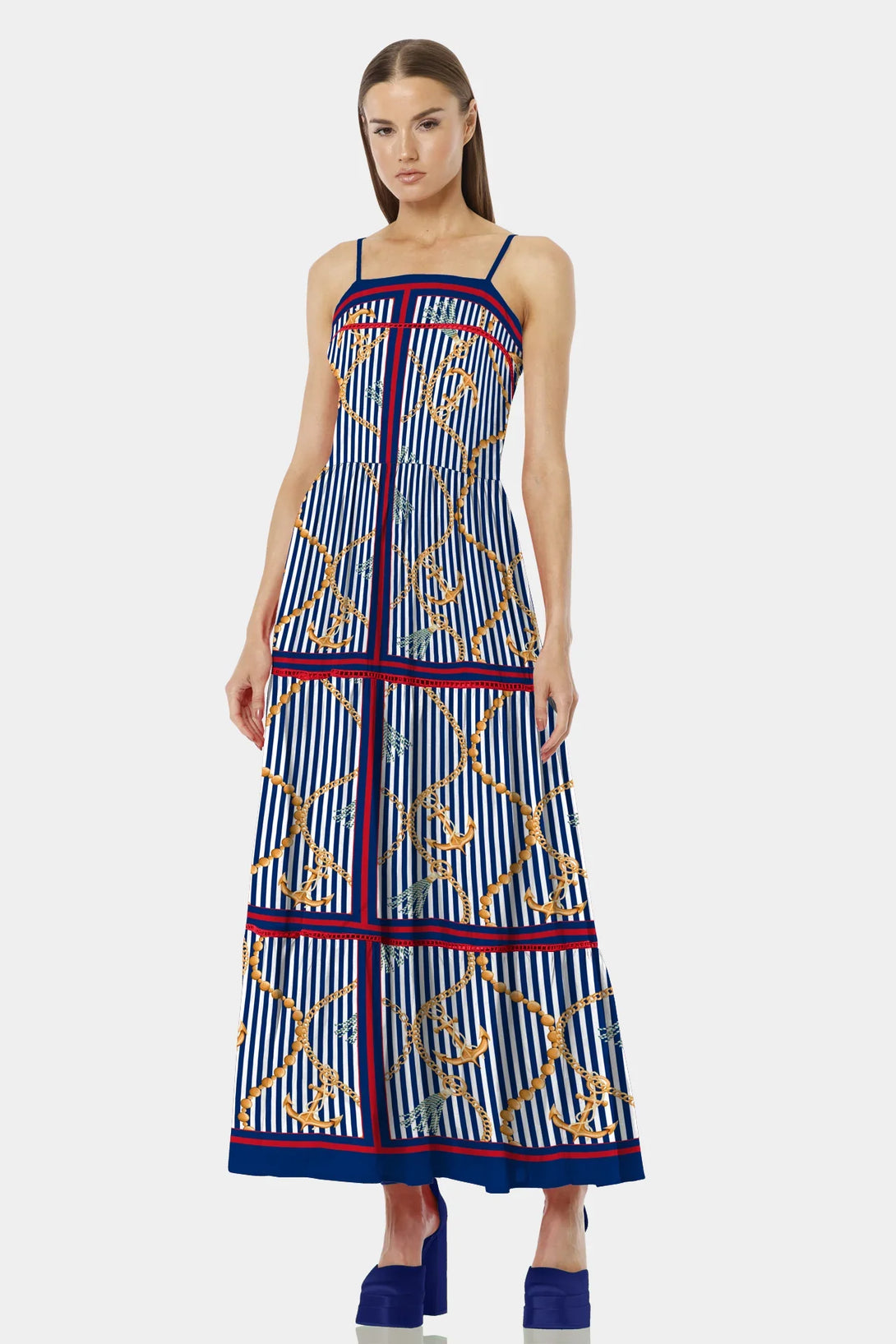 Turn your outfit, from basic to occasion wear, just by carrying this with minimal accessories to partywear jewelry, high heels, a designer clutch or stylish hairstyle, where this dress features spaghetti straps, sleeveless dress, and long tiered dress, designed by Shahida Parides.