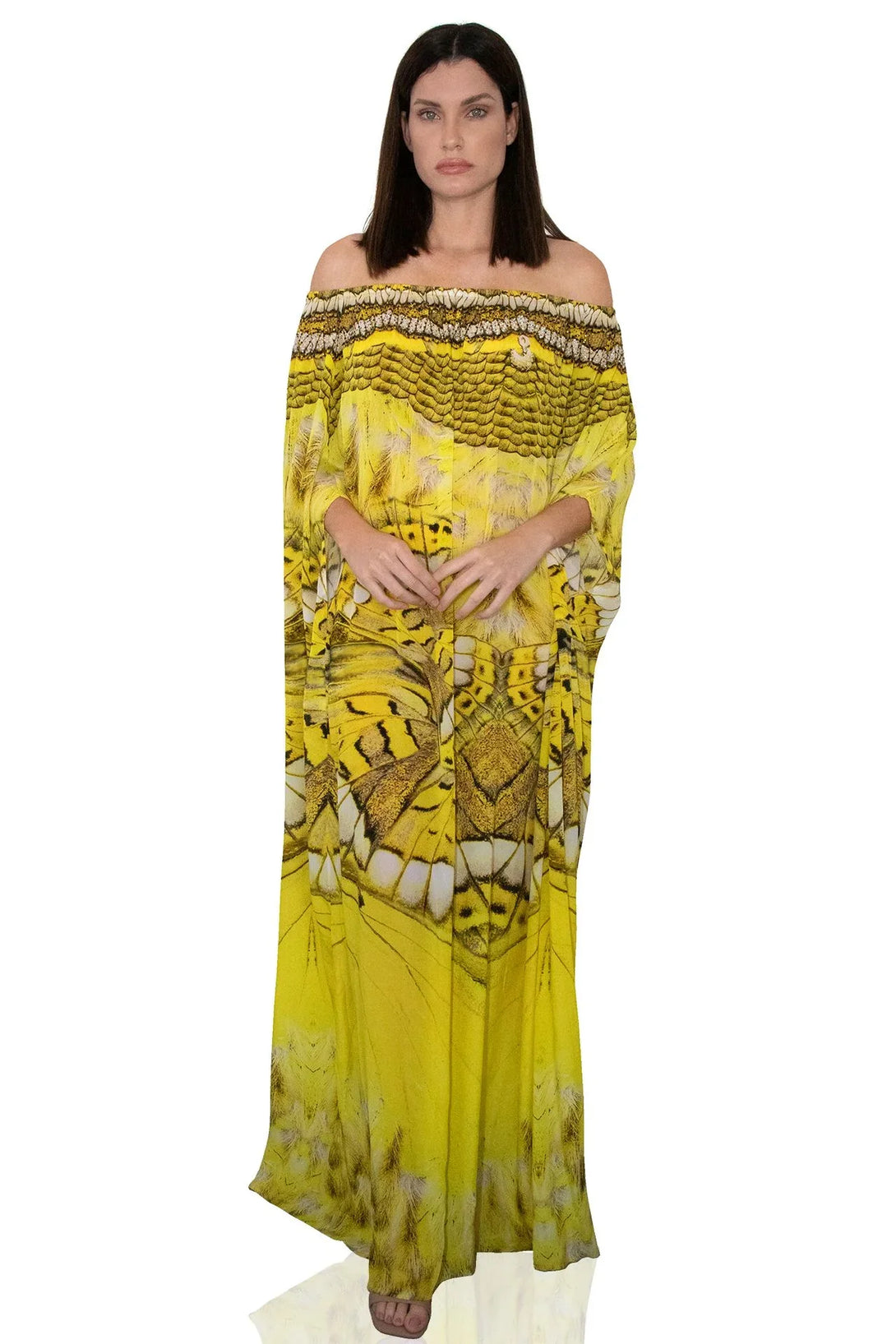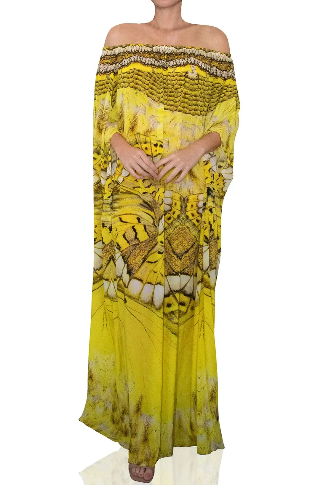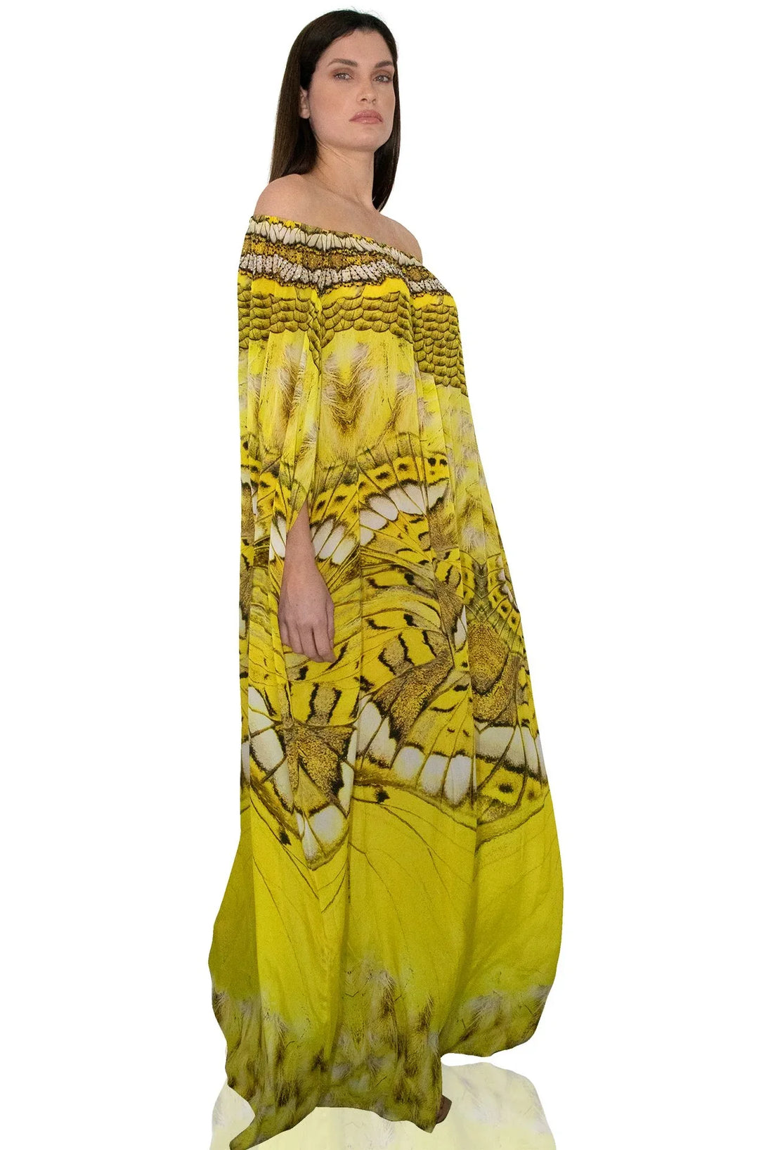 Introducing our Off The Shoulder Yellow Dress - the perfect addition to your wardrobe. This stylish and elegant dress features a flattering off the shoulder design, guaranteed to turn heads. Crafted with high-quality fabric, it offers both comfort and style. Elevate your look and feel confident in our beautiful dress.