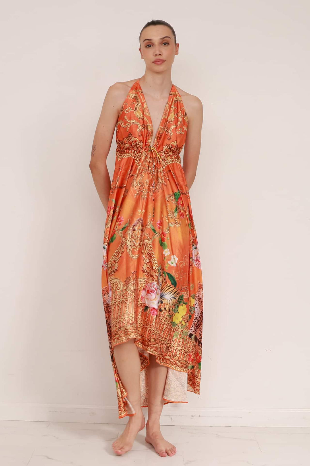 This long flowy dresses, with infinity bridesmaid dresses, style which can be styled in 3 ways, like halter neck, one shoulder, and off shoulder, where its print add a touch of elegance into your outfit, which is designed by Shahida Parides.