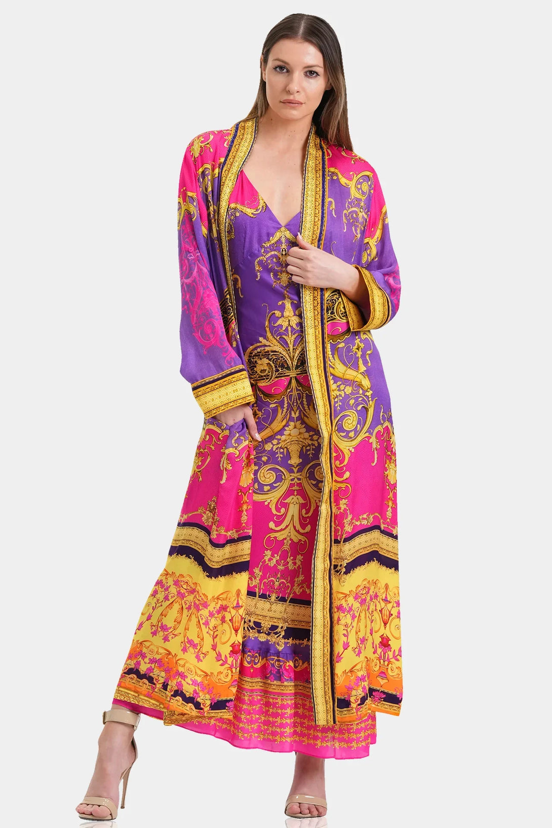 Luxury Loungewear & Loungewear Sets for Women:Ā Elegant and Timeless, we can see why silk coats Silk Duster and lightweight silk jackets are designerShahida Parides brand signature. This iteration is made of lustrous Viscose silk satin and features an elongated, relaxed Kimono silhouette. Wear it loose or cinch the belted waist to define your figure.