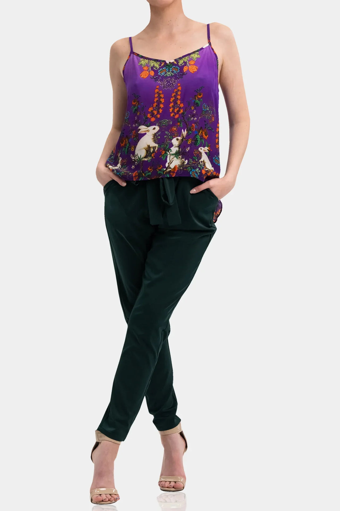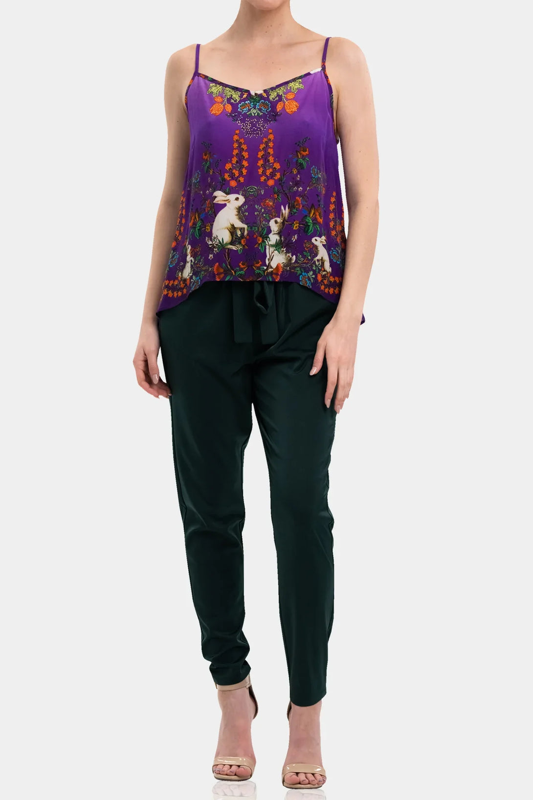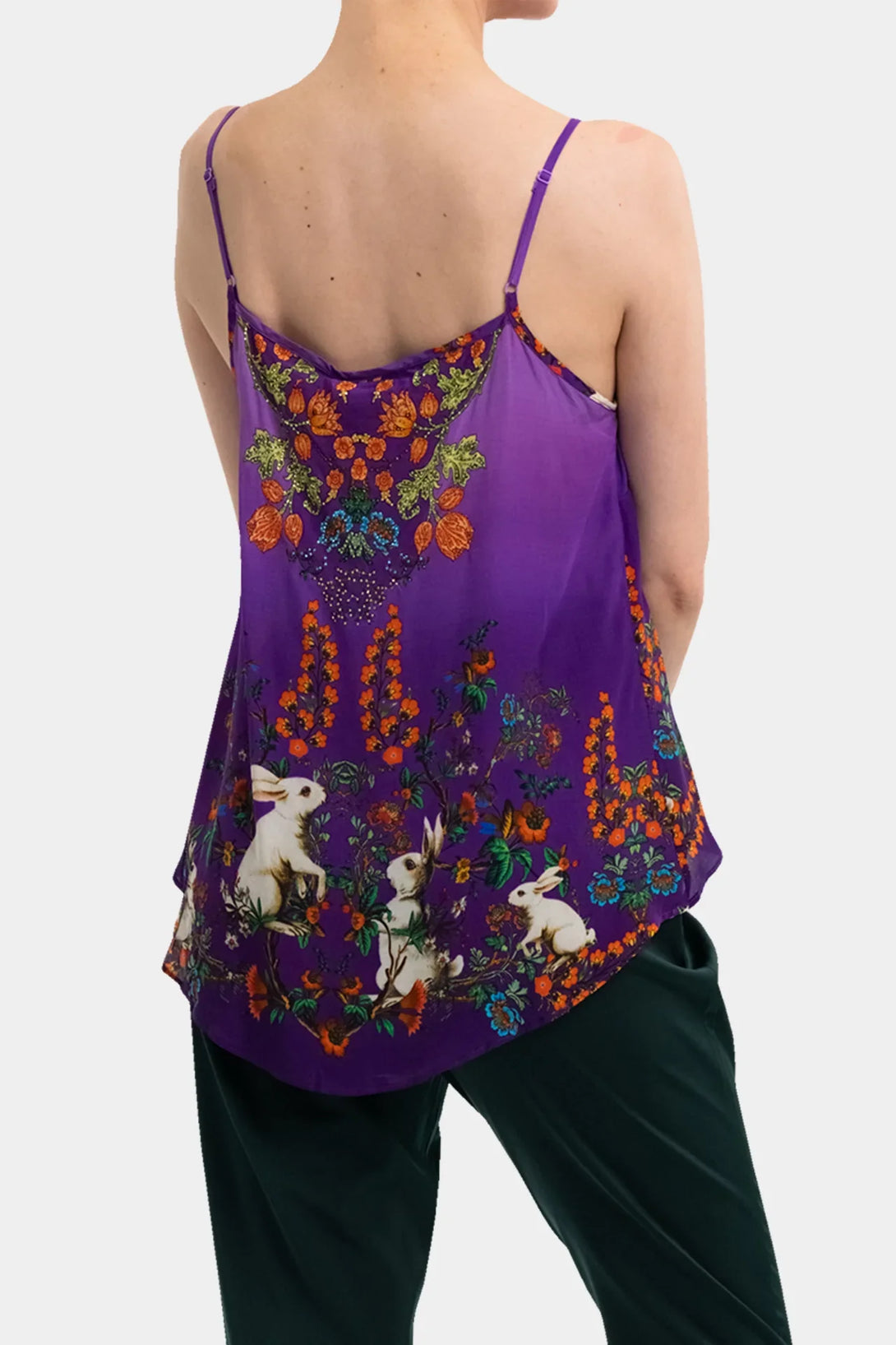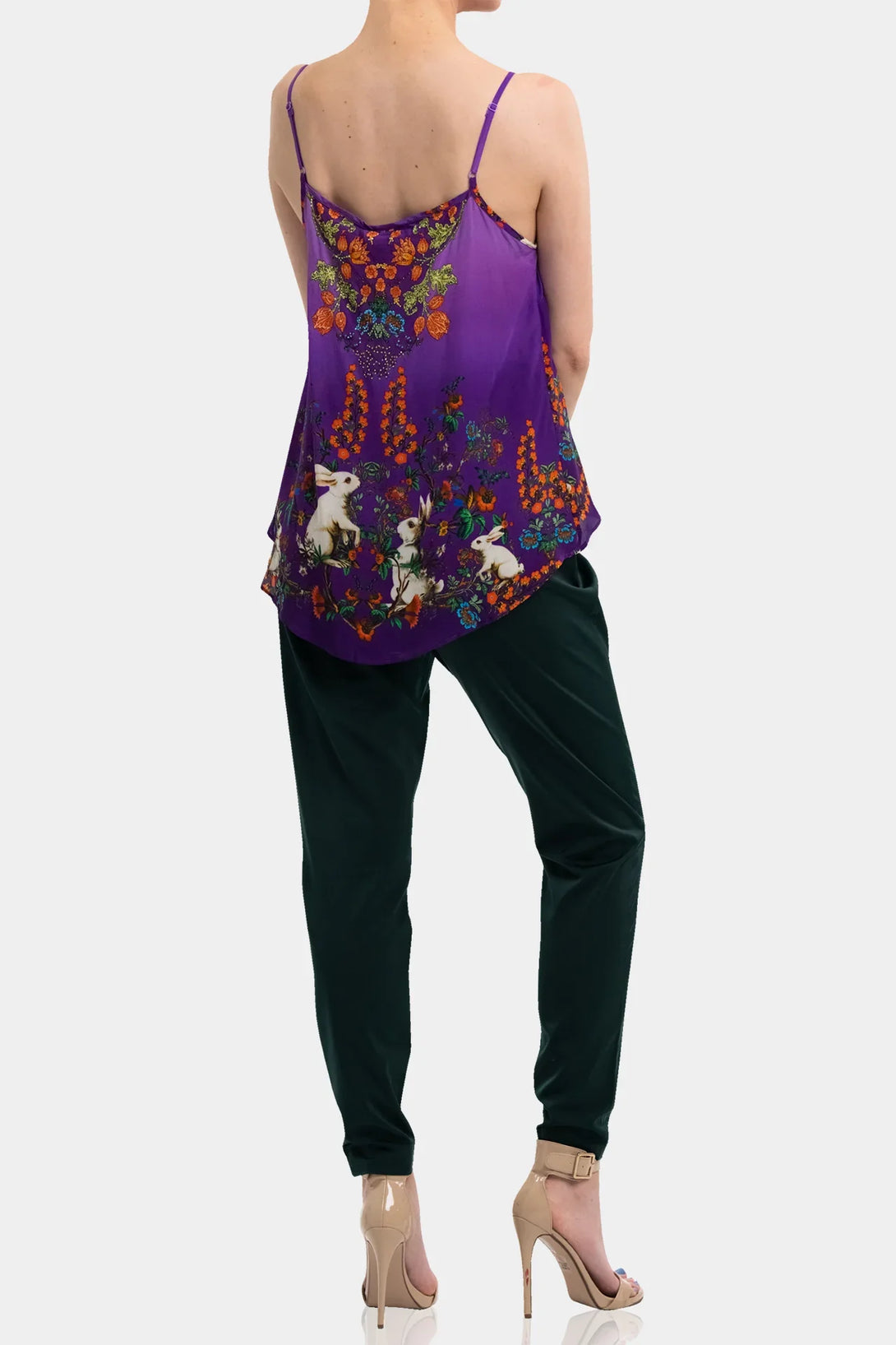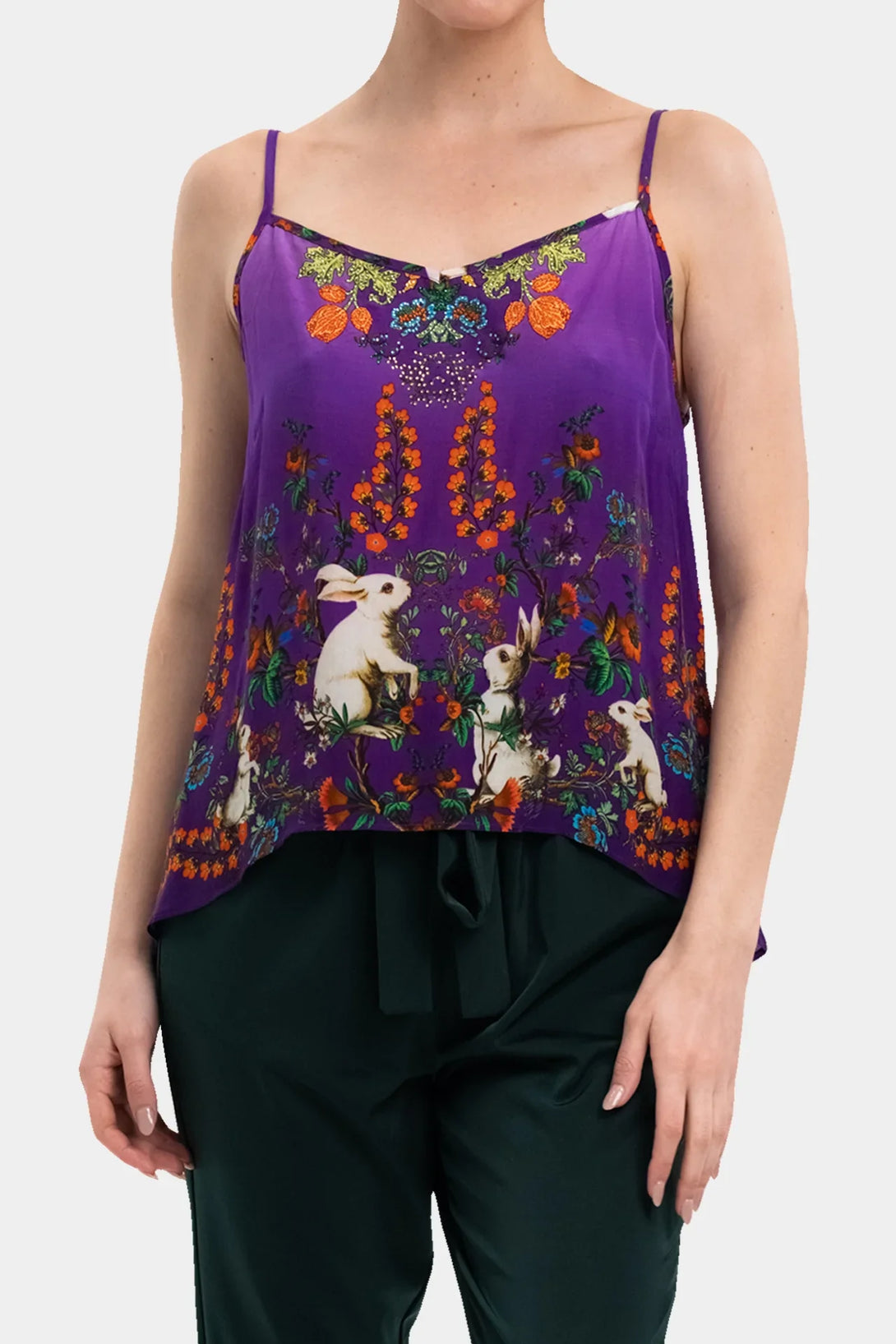 Spaghetti straps - Printed with rhinestone embellishments - Convertible styling for versatile wear - Approx. 22" shortest length to 25" longest length (size S-M) - Imported