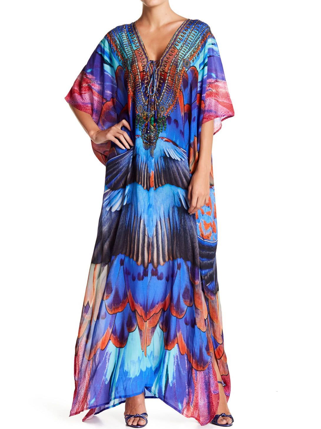 Get ready to enjoy your vacations where you can carry these clothes for beach vacation, for the summer vacation outfits, where silk caftan dress adds a touch of elegance, at Shahida Parides.