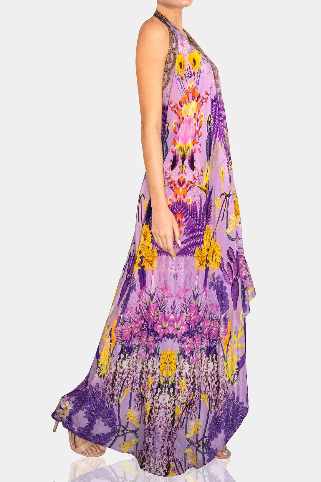 Multicolored and multi patterned maxi dress that can be used in multi ways -