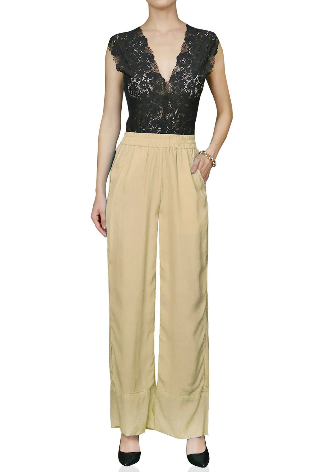 Silk Straight Leg Pants Creame Souffle