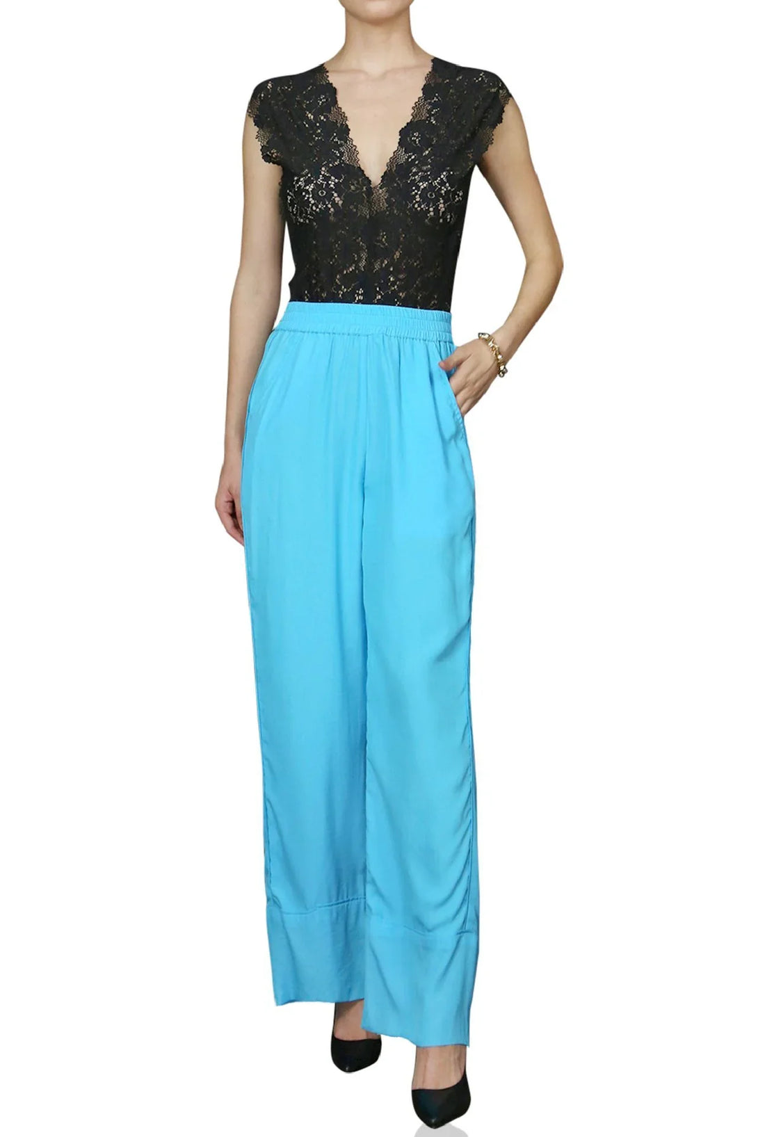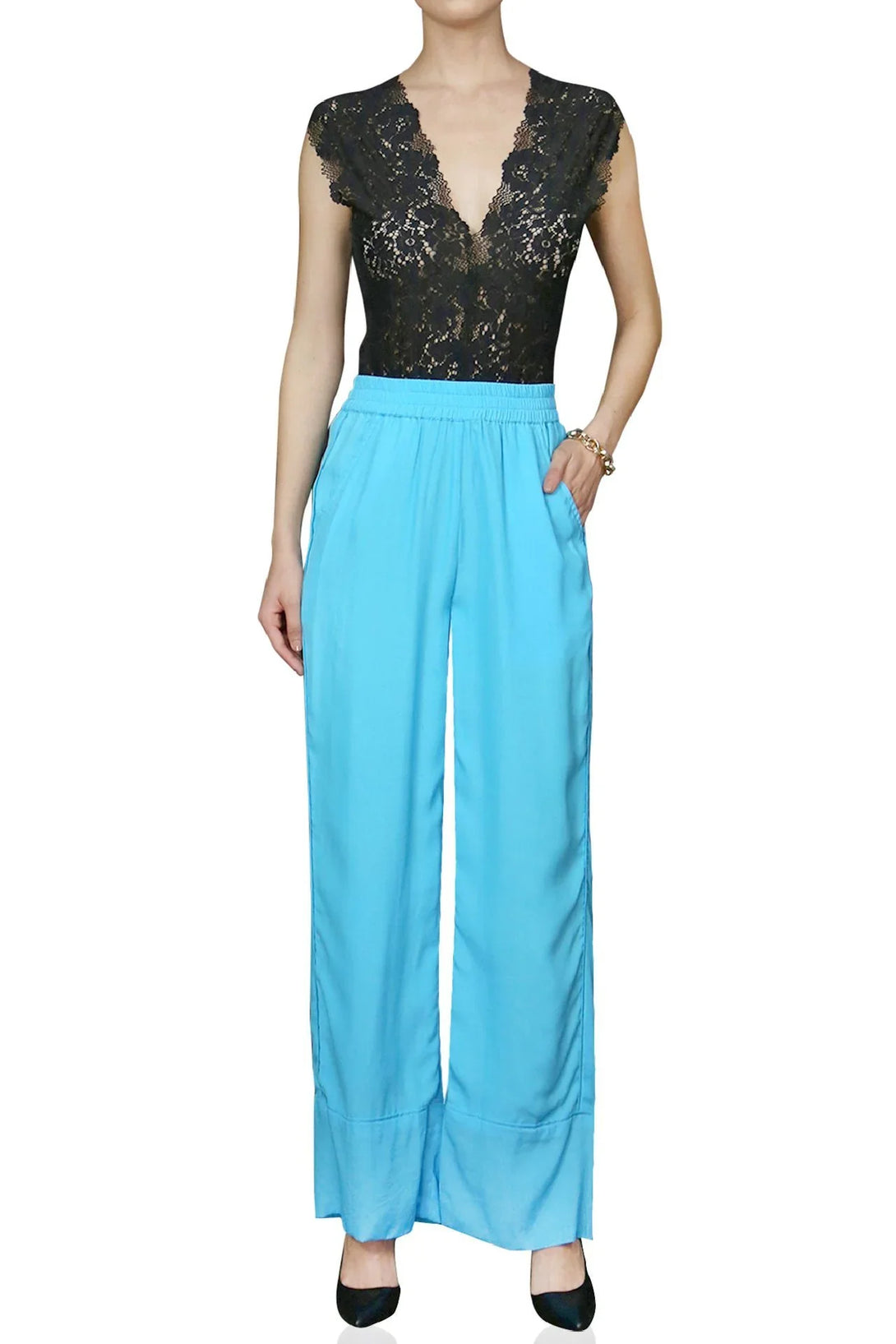 - Printed pull on Silky pants.