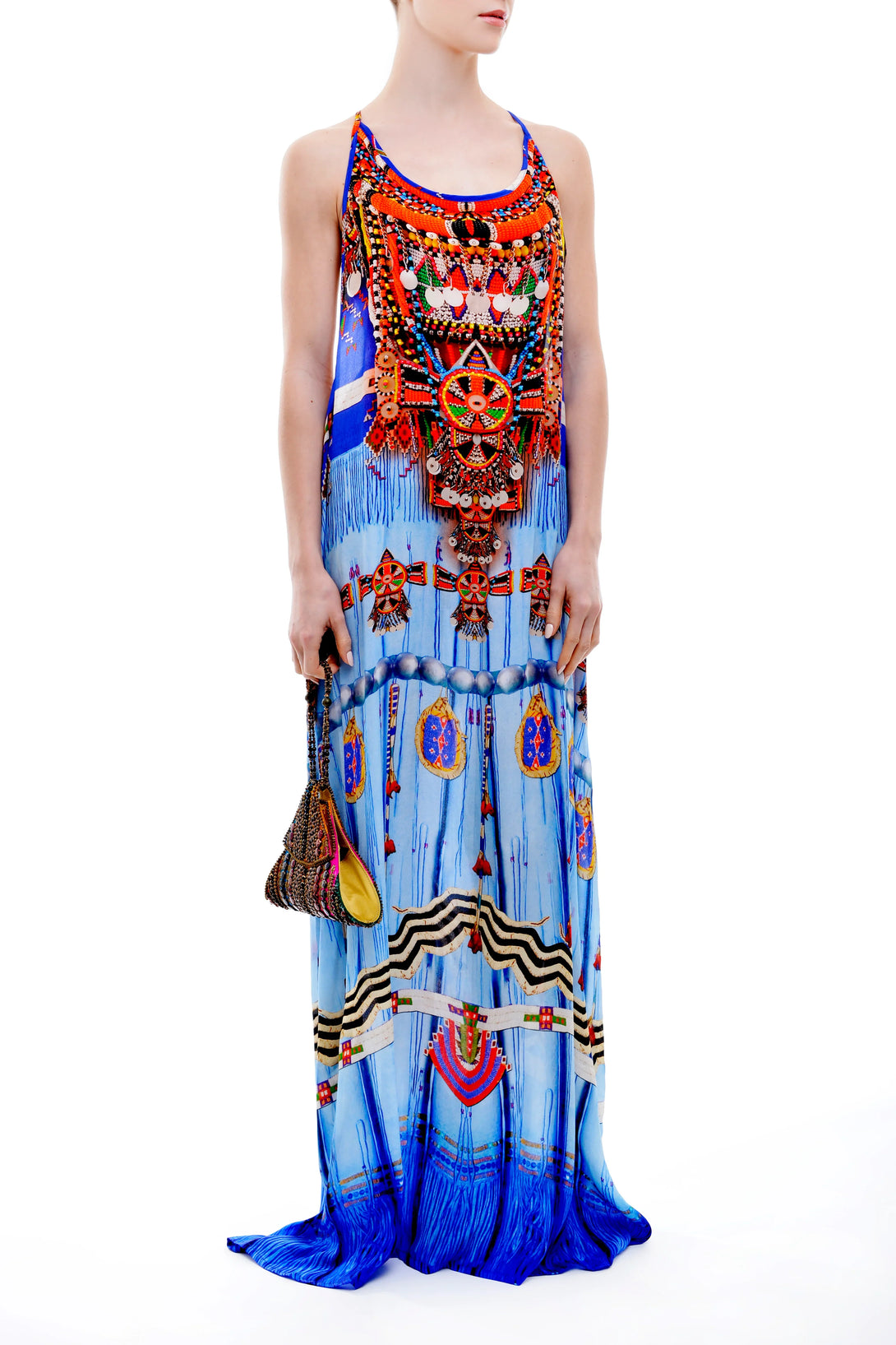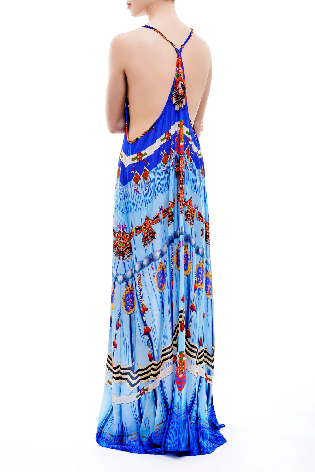 Embrace your femininity in this long summer dresses, where designer backless maxi dress gently accentuates your back and shoulders, creating a look that's both flattering and effortlessly charming, available at Shahida Parides.