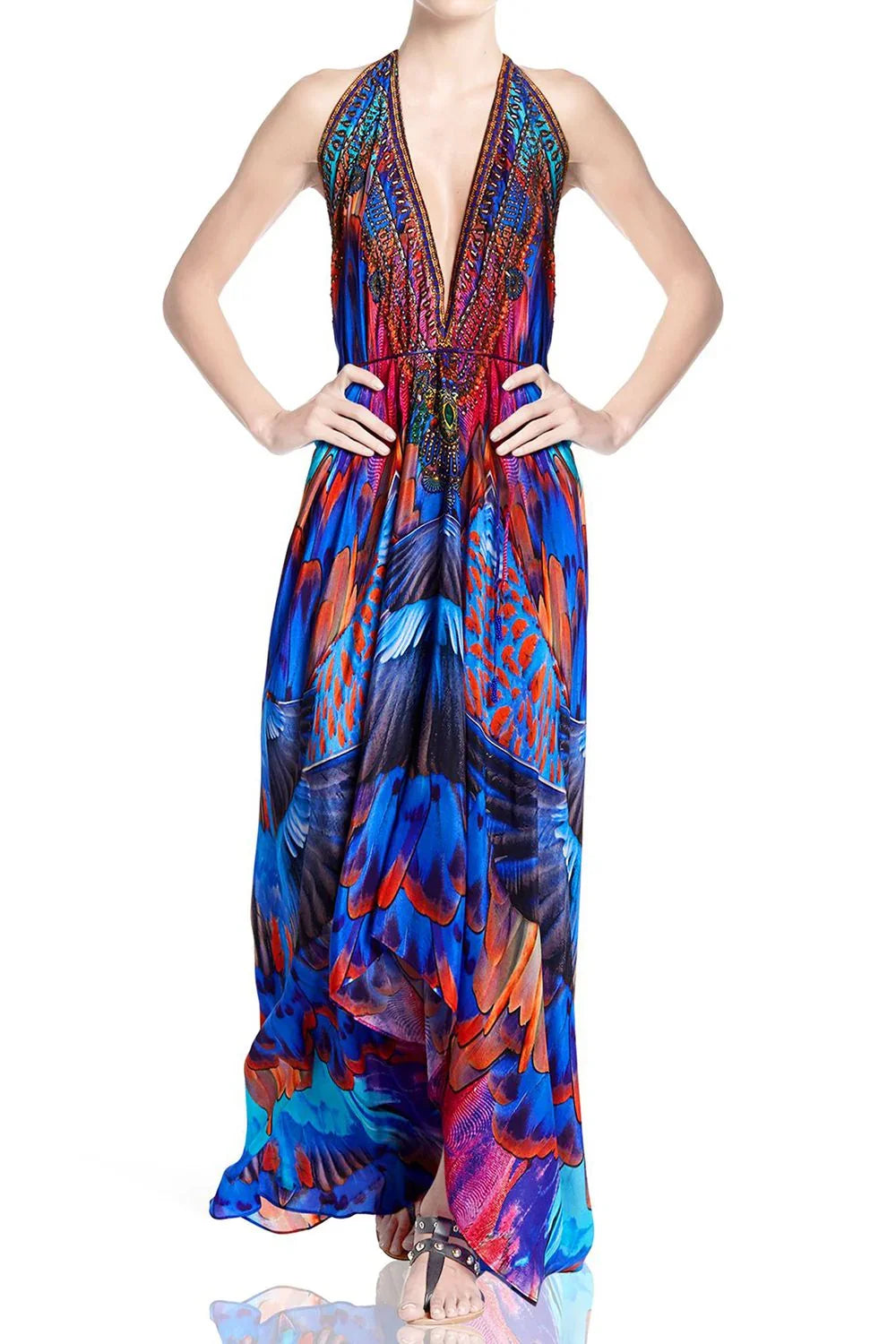 Multicolored and multi patterned maxi dress that can be used in multi ways -