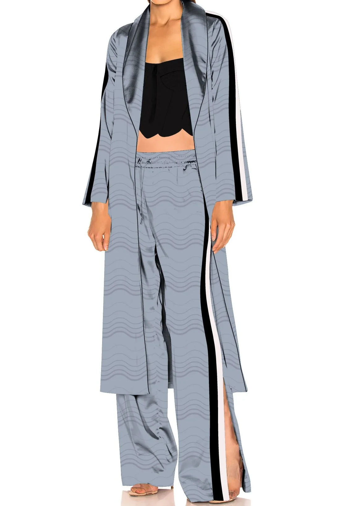 Vegan Silk Women's Jacket and Pants In Grey Made With Cupro Sustainable