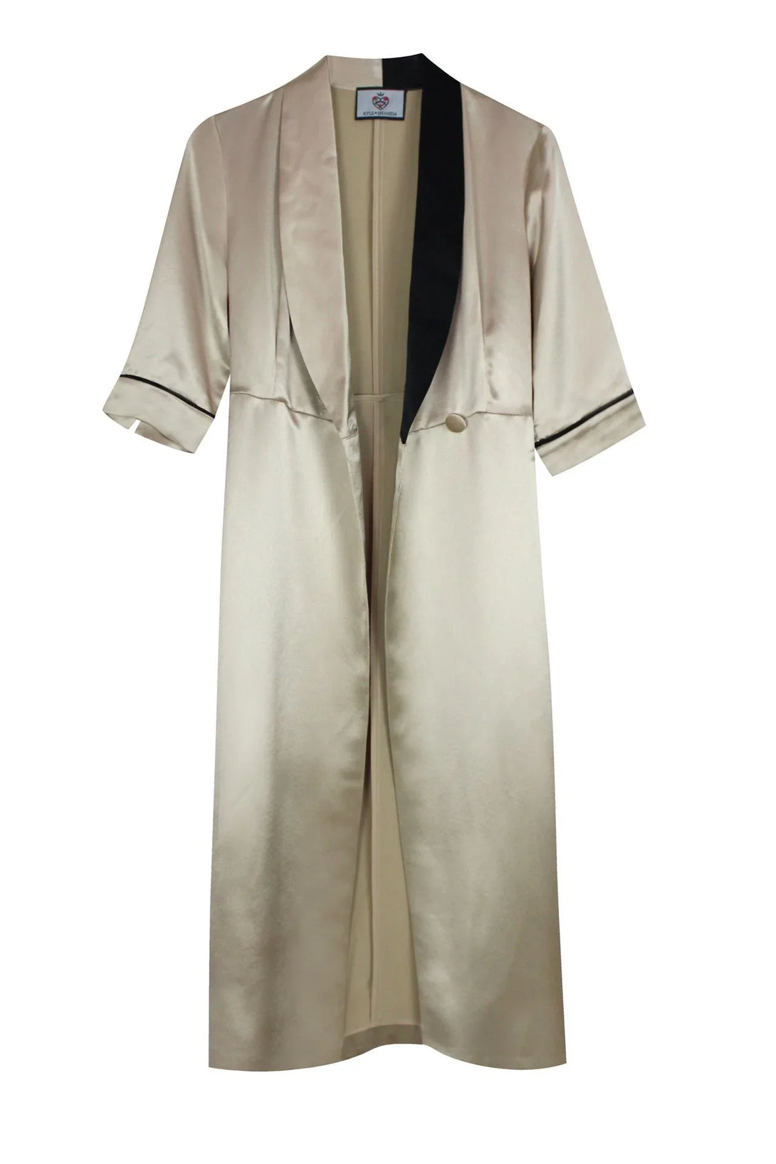 - Shawl collar; open front.